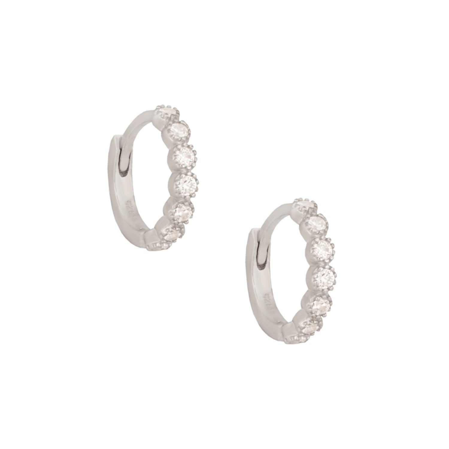 Γυναικεία ασημένια 925 επιπλατινωμένα σκουλαρίκια huggies Κρικάκια 12.00 με καρφωμένα σειρέ λευκά ζιργκόν. Υπέροχα και κομψά θα χαρίσουν εκτυφλωτική λάμψη στις καθημερινές εμφανίσεις σας. Το mini μέγεθος τους κοντά στον λοβό τα κάνει ιδανικά για ear candy mix match συνδυασμούς ιδανικά ακόμα και για δεύτερες ή τρίτες τρύπες στα αυτιά. Ενω το κλασσικό τους σχέδιο θα ανανεώσει την συλλογή σας και θα τα φορέσετε διαχρονικά. Μια εξαιρετική επιλογή για εσάς ή για ενα προσωπικό δώρο με προσιτή τιμή και πολυτέλεια.