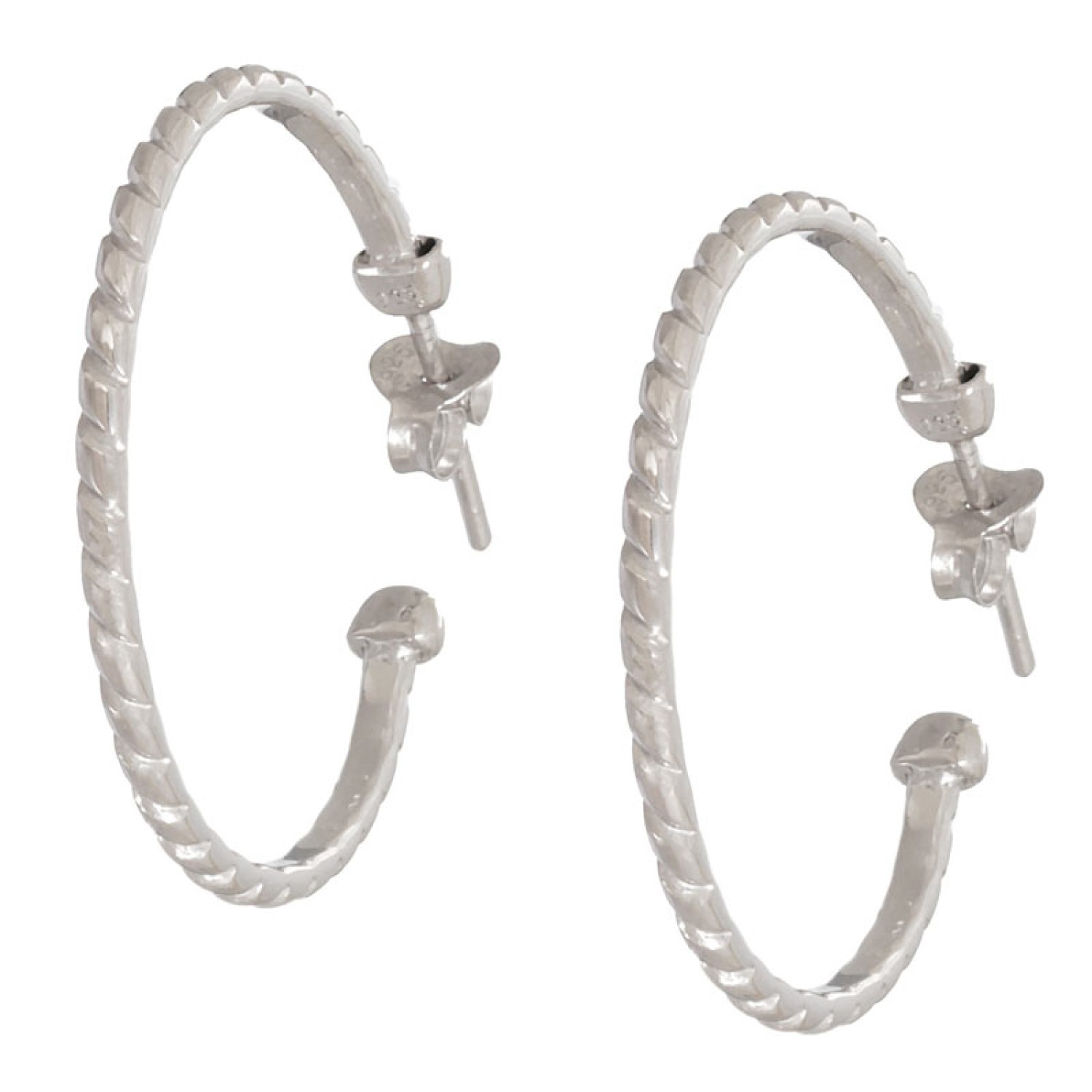 Γυναικεία ασημένια 925 επιπλατινωμένα καρφωτά σκουλαρίκια Κρίκοι. Ενα περίτεχνο σχέδιο που συνδυάζει κομψότητα και διαχρονικότητα. Το χειροποιήτο κόσμημα με λεπτομέρεια σαν Πλεξούδα που κλέβει τις εντυπώσεις με την πρώτη ματιά. Υπόσχεται να μαγνητίσει όλα τα βλέμματα και να μεταμορφώσει κάθε retro chic σύνολο. Το μεσαίο μέγεθος τα κάνει ιδανικά για chic εμφανίσεις. Μια εξαιρετική πρόταση για εσάς ή για ενα προσωπικό δώρο με πόντους στύλ.