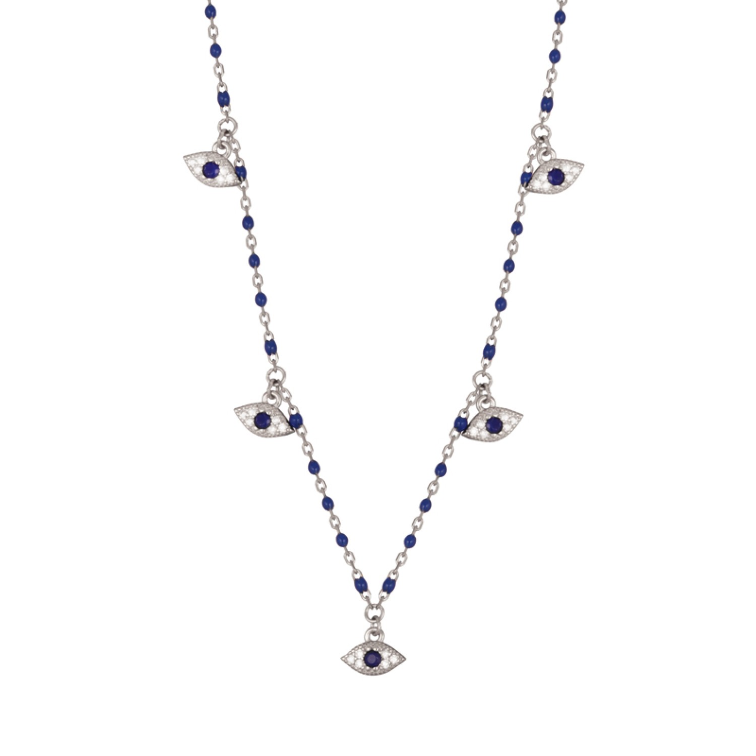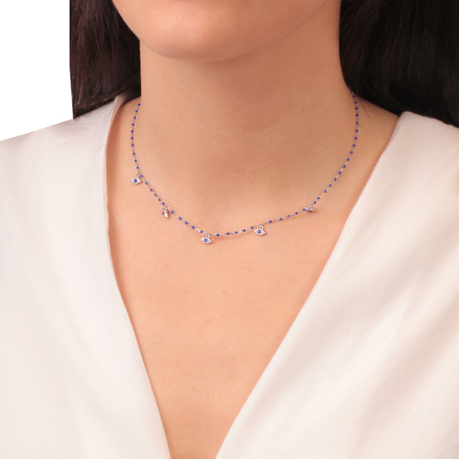 Ασημένιο επιπλατινωμένο κολιέ Ροζάριο Μάτια