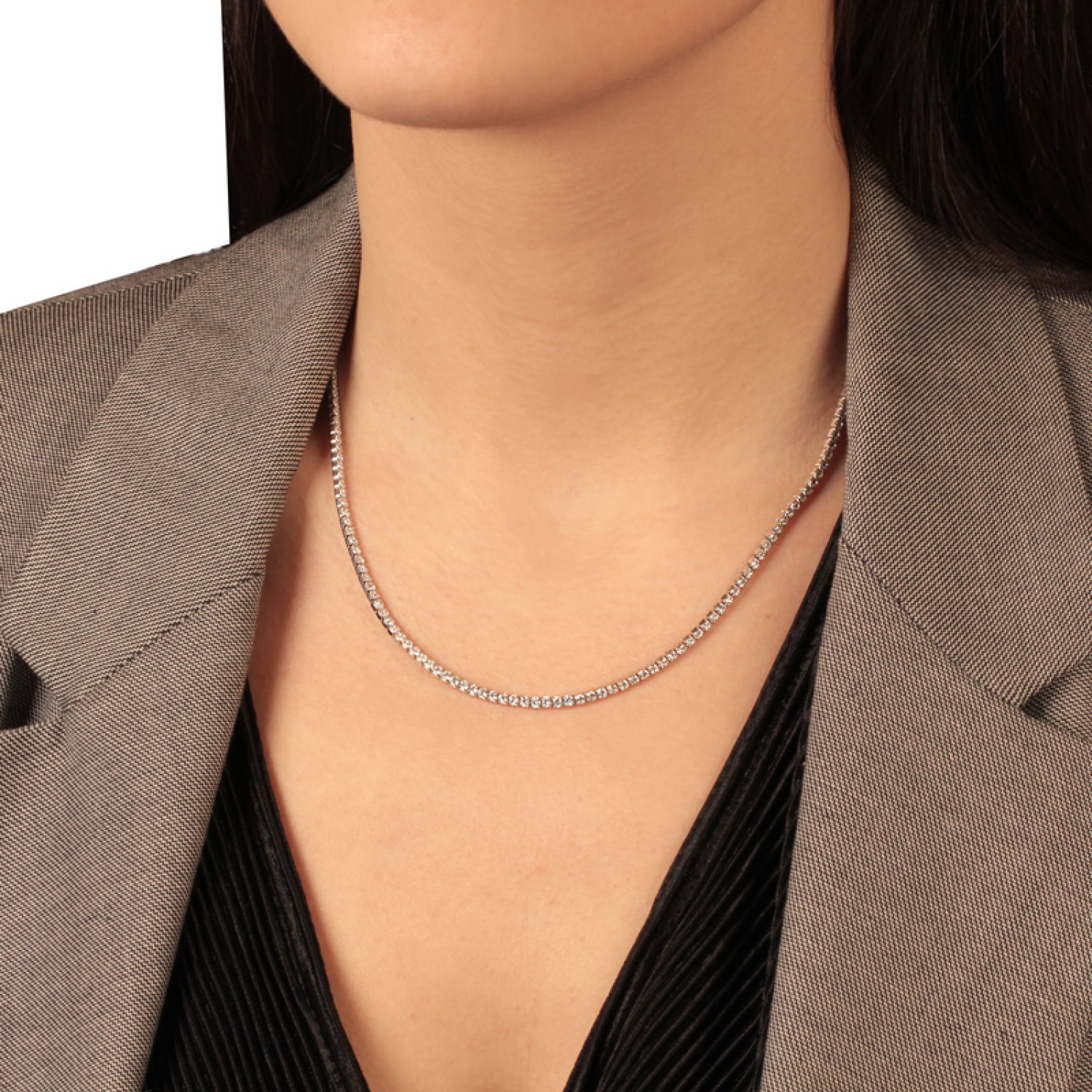 Ασημένιο επιπλατινωμένο κολιέ Tennis Ριβιέρα