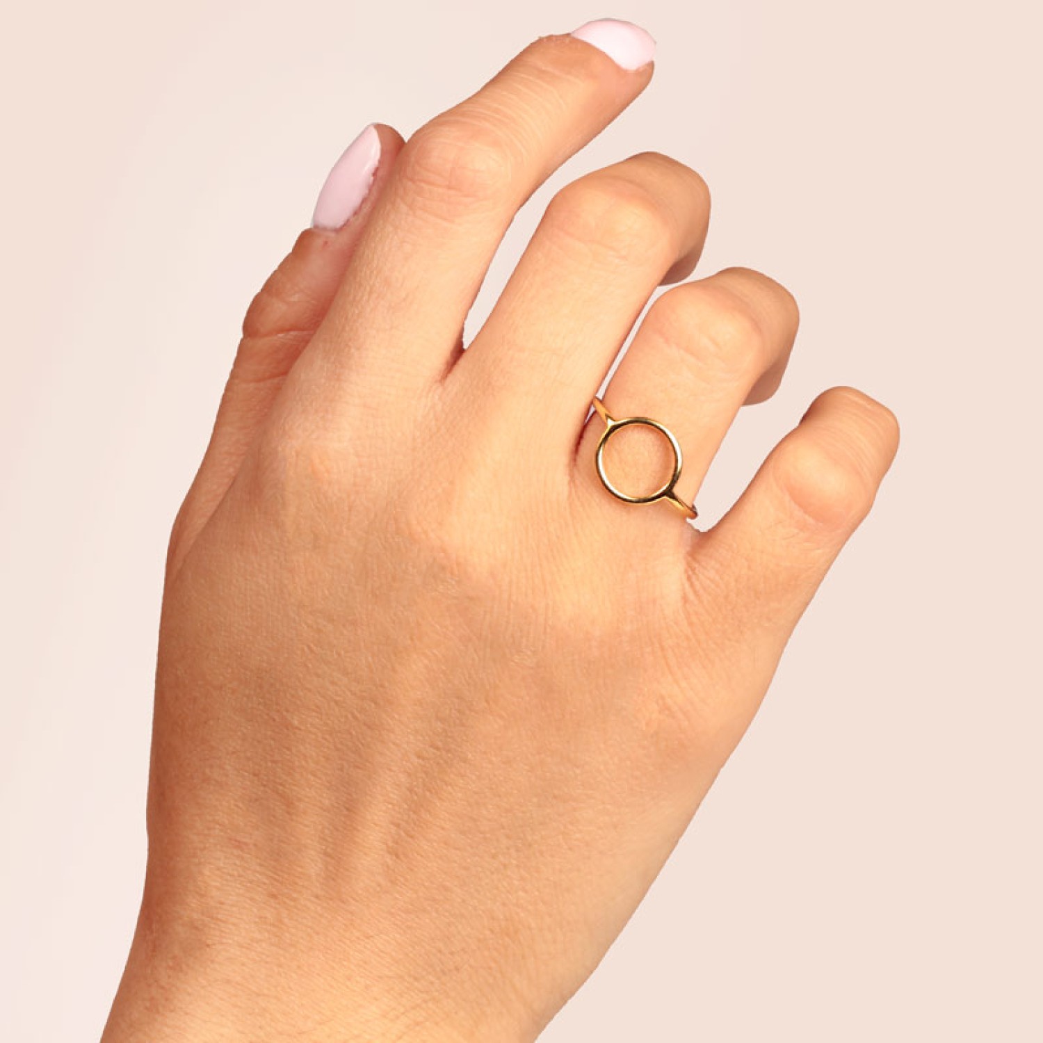 Γυναικείο ασημένιο 925 επίχρυσο σε 14k χρυσό δαχτυλίδι περίγραμμα Κύκλος. Minimal και λαμπερό θα χαρίσει πόντους στύλ σε κάθε boho chic εμφάνιση. Άκρως συμβολικό και ντελικάτο, θα μαγνητίσσει όλα τα βλέμματα θαυμασμού. Μια εξαιρετική επιλογή για να το συνδυάσετε και με άλλα για ενα fashion ring party. Προτείνουμε να το χαρίσετε και ως ενα προσωπικό δώρο με προσιτή τιμή και ξεχωριστό νόημα. Διαθέτει ανοιχτή γάμπα για να το προσαρμόσετε ελαφρώς στο νούμερο σας.