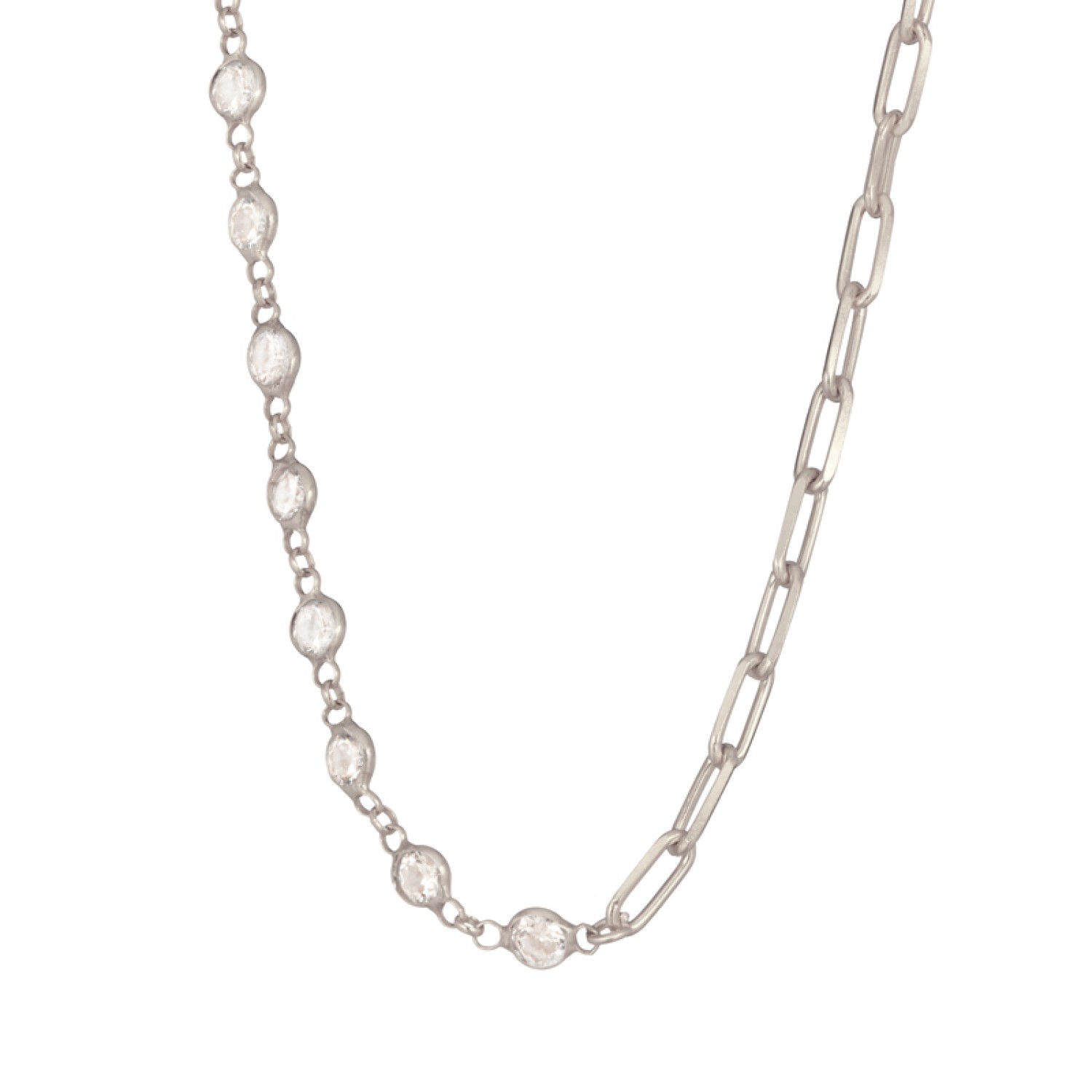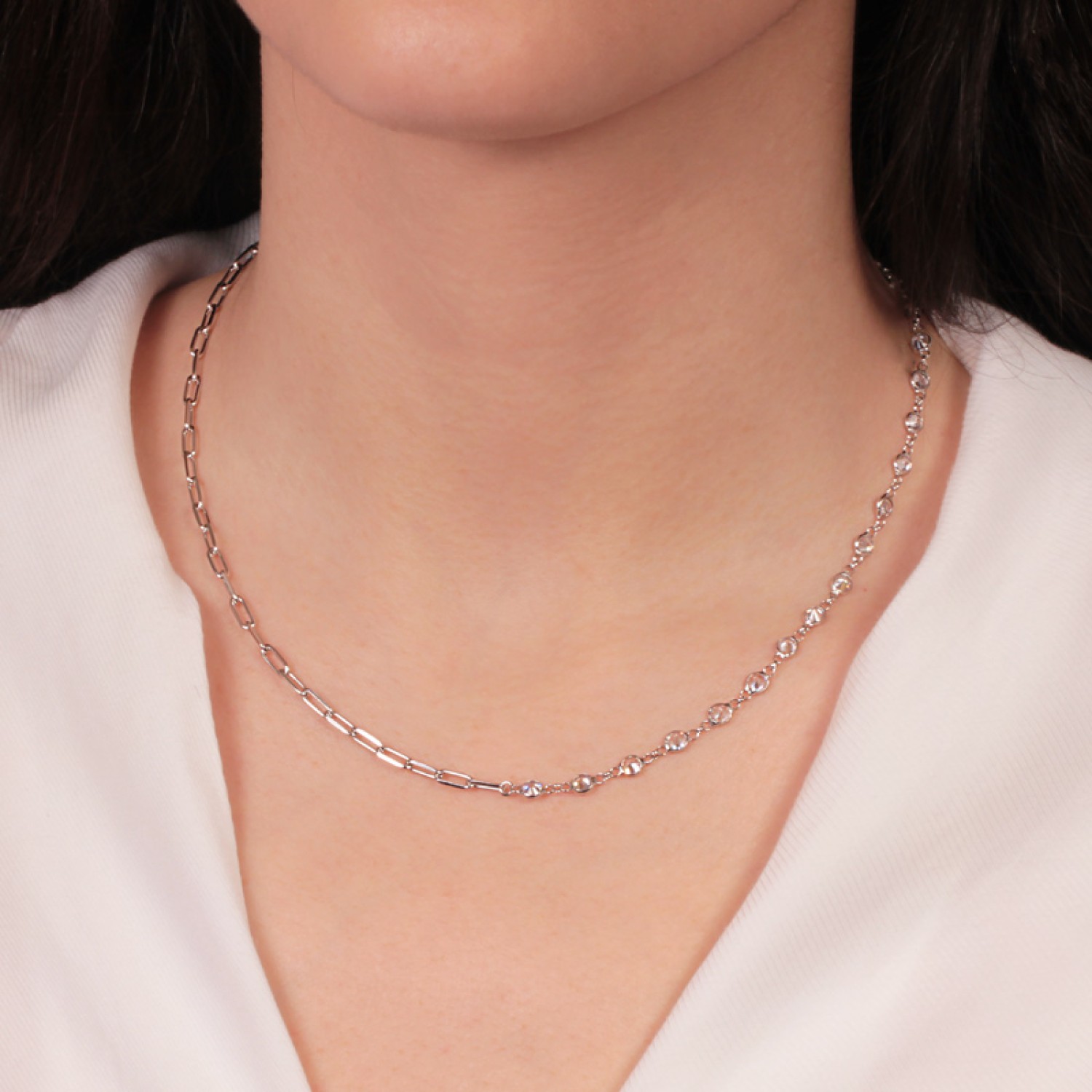 Ασημένιο κολιέ Σετ Αλυσίδα Μονόπετρα