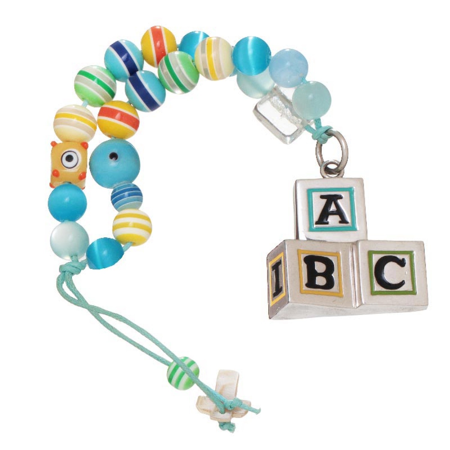 Ασημένιο επιπλατινωμένο παιδικό γούρι Αλφάβητο σε κορδόνι με χρωματιστές χάντρες. Ενα ιδιαίτερο δώρο σε νεογέννητο ιδανικό για γέννηση ή βάπτιση.
