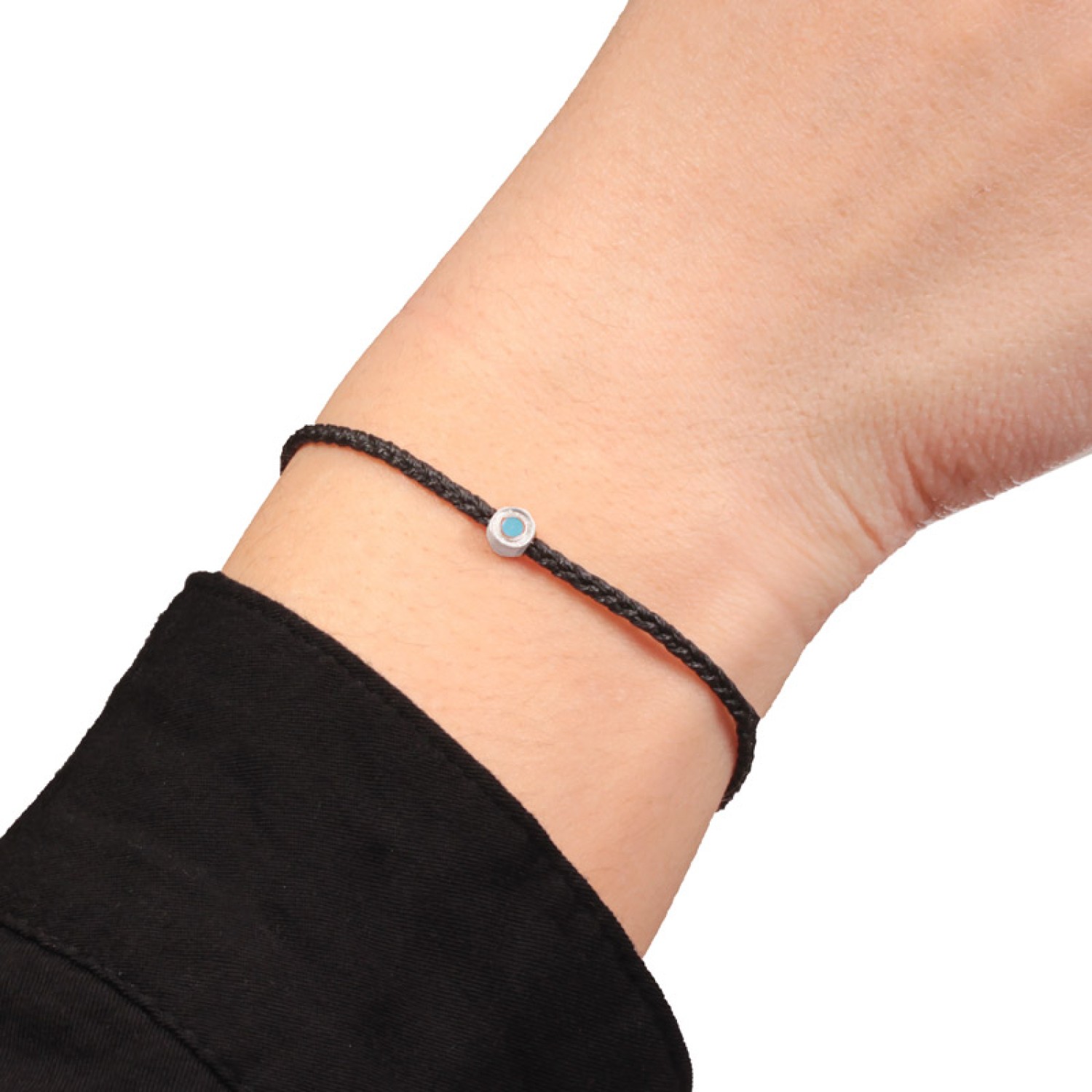 Βραχιόλι Unisex με μαύρο κορδόνι πλεξούδα με ασημένιο 925 επιπλατινωμένο mini Μάτι. Χειροποιήτα φιλοτεχνημένο με σμάλτο δημιουργεί μια εντυπωσιακή διχρωμία που μαγνητίζει. Κομψό και συμβολικό θα γίνει σίγουρα το φυλαχτό της Προστασίας σας. Το μέγεθος είναι ιδανικό για κάθε ημέρα και στιγμή. Μια εξαιρετική επιλογή για εσάς ή για ενα προσωπικό δώρο με προσιτή τιμή και ξεχωριστό νόημα.