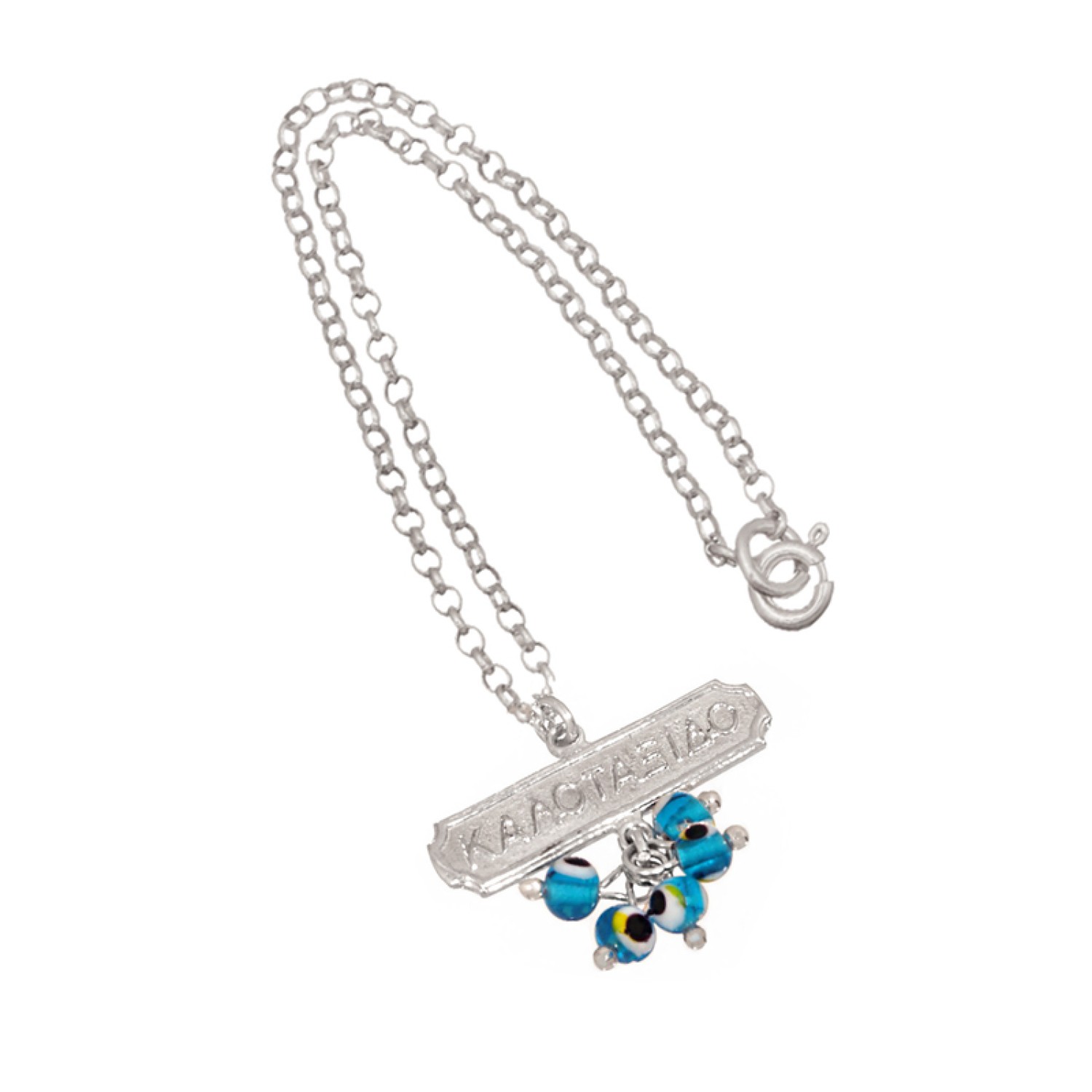 Ασημένιο 925 επιπλατινωμένο Γούρι Αυτοκινήτου Αλυσίδα με πλακέτα Καλοτάξιδο και κρεμαστά Μάτια. Το πιο αγαπημένο σύμβολο Τύχης και θετικής Ενέργειας σε μοντέρνα έκδοση. Ενα λαμπερό φυλαχτό που συνδυάζει κομψότητα και διαχρονικότητα. Μια εξαιρετική επιλογή για άντρα ή για γυναίκα. Κρεμάστε το στο δικό σας ή χαρίστε το με τις εγκάρδιες ευχές σας και καλοτάξιδο να είναι το νέο αμάξι. Ενα παντοτινό δώρο με προσιτή τιμή και πολυτέλεια.