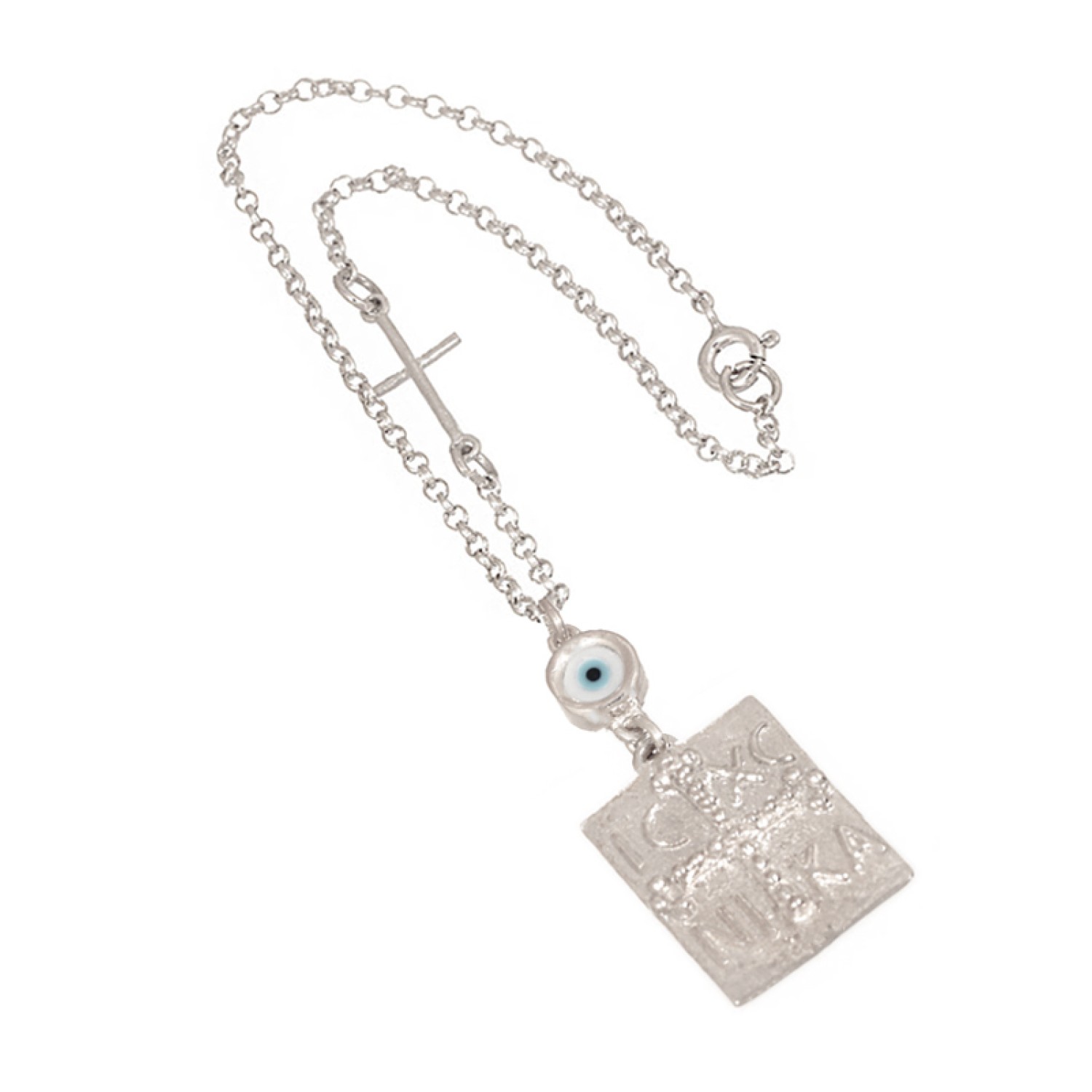 Γούρι Αυτοκινήτου ασημένια 925 επιπλατινωμένη Αλυσίδα με κρεμαστό Μάτι Φίλντισι και Κωνσταντινάτο. Η φίνα αλυσίδα είναι στολισμένη με ενα Σταυρό πλαγίως να συμπληρώνει με λεπτομέρεια. Το κλασσικό φυλαχτό συνδυάζει κομψότητα και διαχρονικότητα. Μια εξαιρετική επιλογή για άντρα ή για γυναίκα. Κρεμάστε το στο δικό σας ή χαρίστε το με τις εγκάρδιες ευχές σας και καλοτάξιδο να είναι το νέο αμάξι. Ενα παντοτινό δώρο με προσιτή τιμή και πολυτέλεια.