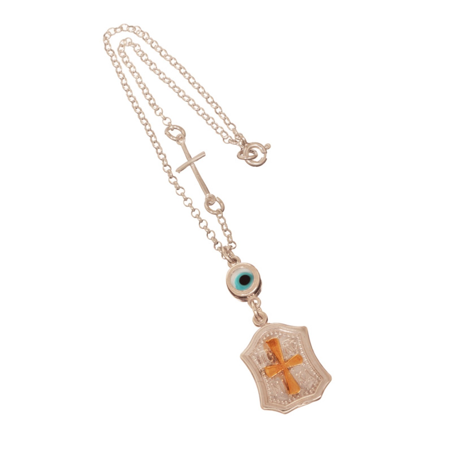 Γούρι Αυτοκινήτου ασημένια 925 επιπλατινωμένη Αλυσίδα με μενταγιόν διπλής όψεως Εικόνα Παναγία και απο την άλλη Σταυρός Κωνσταντινάτο. Το φίνο σύνολο συμπληρώνει ενα Μάτι Φίλντισι και ενας πλάγιως Σταυρός. Το κλασσικό συναισθηματικό φυλαχτό συνδυάζει κομψότητα και διαχρονικότητα. Μια εξαιρετική επιλογή με λαμπερές επίχρυσες λεπτομέρεις που χαρίζουν πολυτέλεια. Κρεμάστε το στο δικό σας ή χαρίστε το με τις εγκάρδιες ευχές σας και καλοτάξιδο να είναι το νέο αμάξι. Ενα παντοτινό δώρο με προσιτή τιμή και ευοίωνο συμβολισμό.