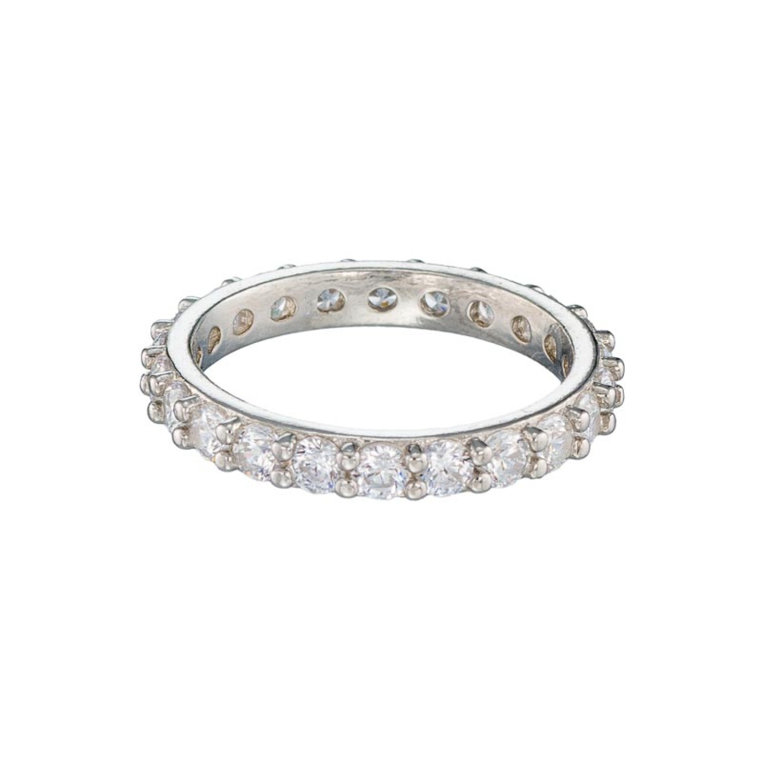 Γυναικείο ασημένιο 925 επιπλατινωμένο δαχτυλίδι Ολόβερο με καρφωμένα brilliant κοπής λευκά ζιργκόν ΑΑΑ. Ενα κλασσικό κόσμημα που συνδυάζει σχέδιο και στύλ, κομψότητα και διαχρονικότητα. Οι σειρέ πέτρες θα στολίσουν το δάχτυλο σας αντανακλώντας απαράμιλλη λάμψη με κάθε σας κίνηση. Υπόσχεται να χαρίσει πολυτέλεια σε κάθε chic εμφάνιση απο το πρωί ως το βράδυ. Το μεσαίο μέγεθος είναι ιδανικό για να το φορέσετε μαζί με άλλα για ενα fashion ring party. Μια εξαιρετική επιλογή και για ενα προσωπικό δώρο που θα κλέψει τις εντυπώσεις.