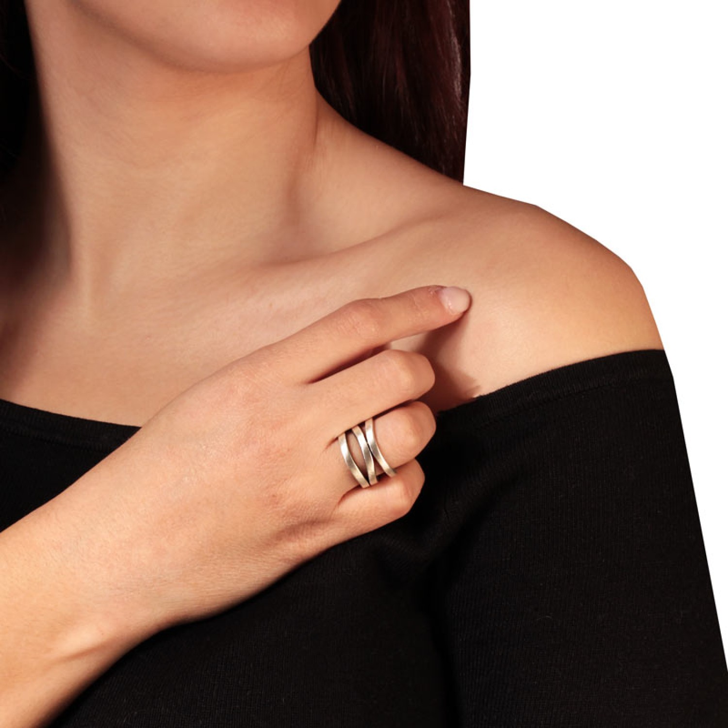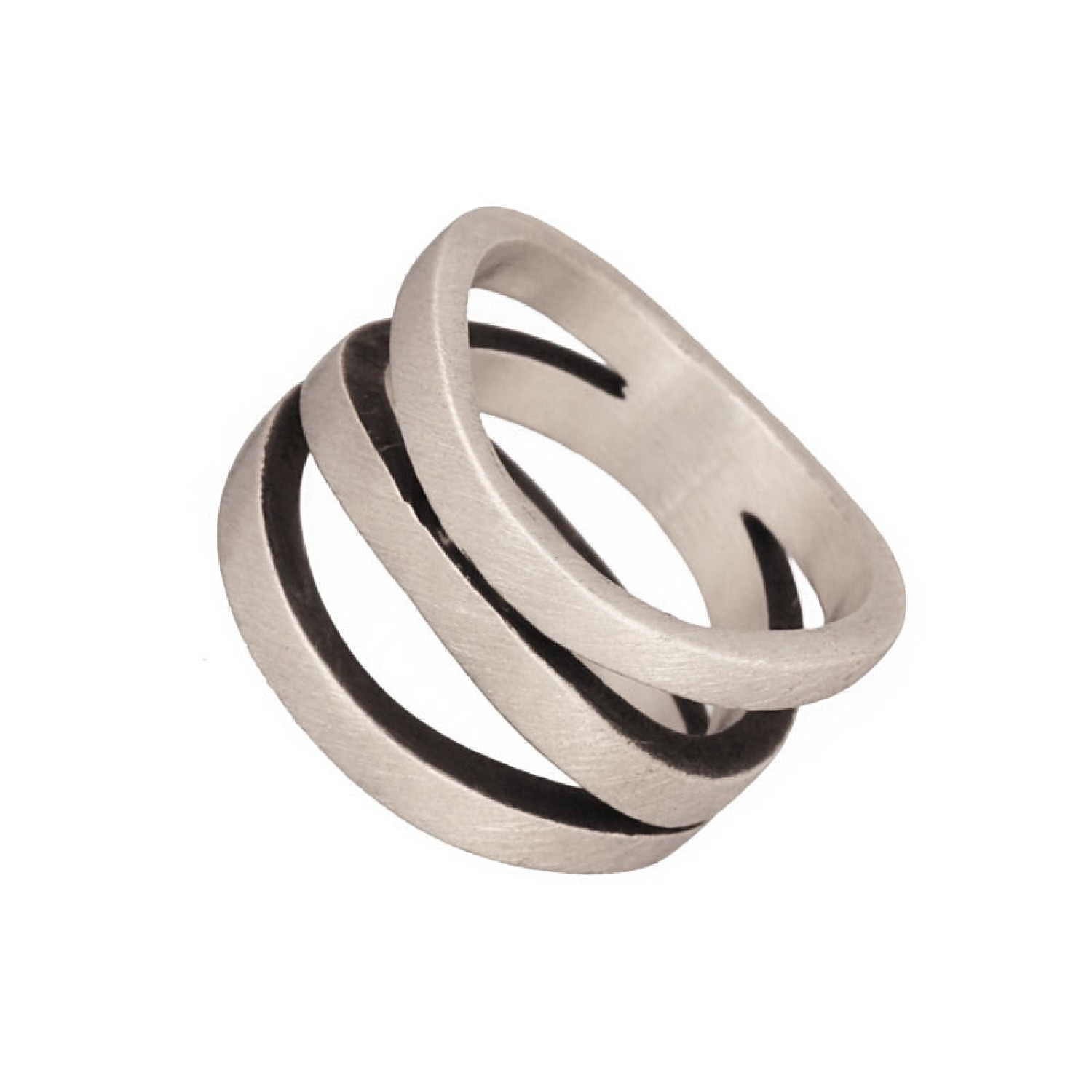 Ασημένιο επιπλατινωμένο δαχτυλίδι Βέρα Γραμμές