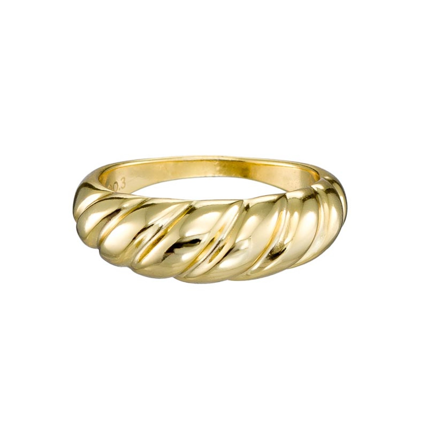 Γυναικείο ασημένιο 925 επίχρυσο δαχτυλίδι Πλεξούδα. Η στριφτή ανάγλυφη μπούλ επιφάνεια αντανακλά λάμψη απο καθε πλευρά. Ενω θα χαρίσει minimal chic στύλ σε κάθε εμφάνιση. Τόσο το περίτεχνο σχέδιο όσο το εντυπωσιακό μέγεθος είναι ιδανικό να το συνδυάσετε με αλλα για ενα fashion ring party.