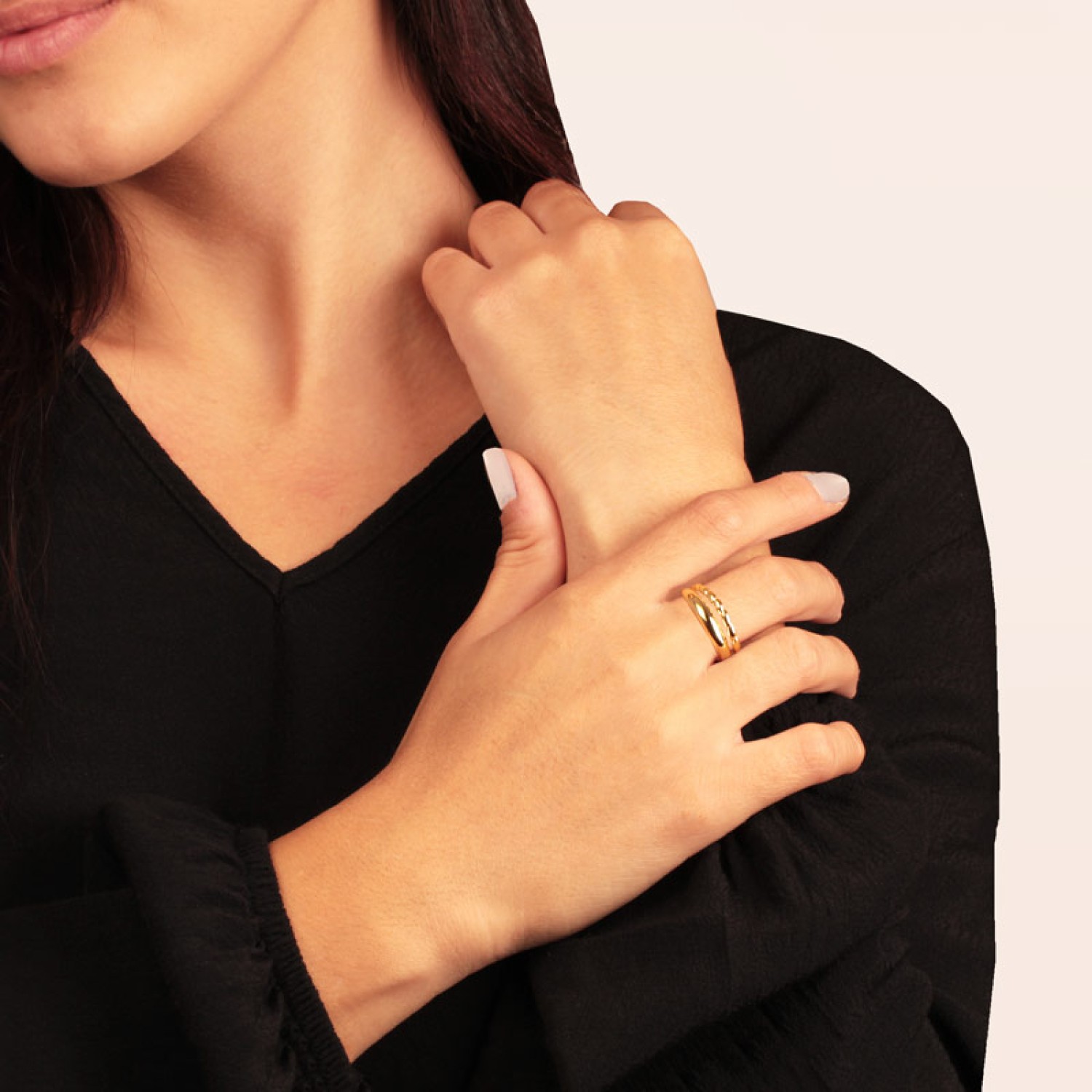 Γυναικείο ασημένιο 925 επίχρυσο δαχτυλίδι Βέρες. Το δίσειρο σέτ αποτελείται απο μια στριφτή και μια μπούλ λεία. Ο ορισμός το boho chic σε ενα ακαταμάχητο κόσμημα. Το κομψό μέγεθος είναι ιδανικό για να το συνδυάσετε και με άλλα για ενα mix match ring party. Σίγουρα ενα και ξεχωριστό που θα κλέψει τις εντυπώσεις με την πρώτη ματιά. Διαθέτει ανοιχτή γάμπα για να το προσαρμόσετε ελαφρώς στο μέγεθος σας.