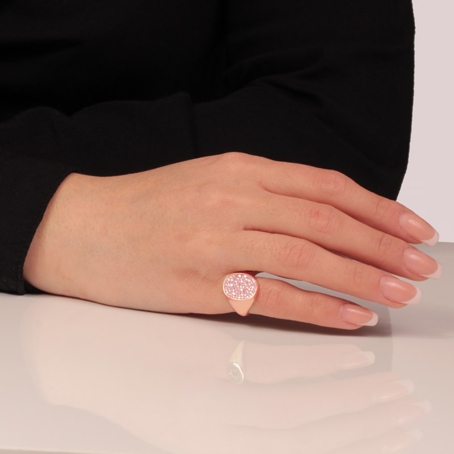 Ασημένιο ρόζ δαχτυλίδι Οβάλ Σεβαλιέ