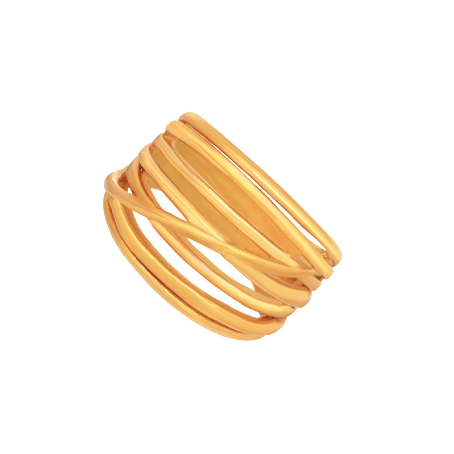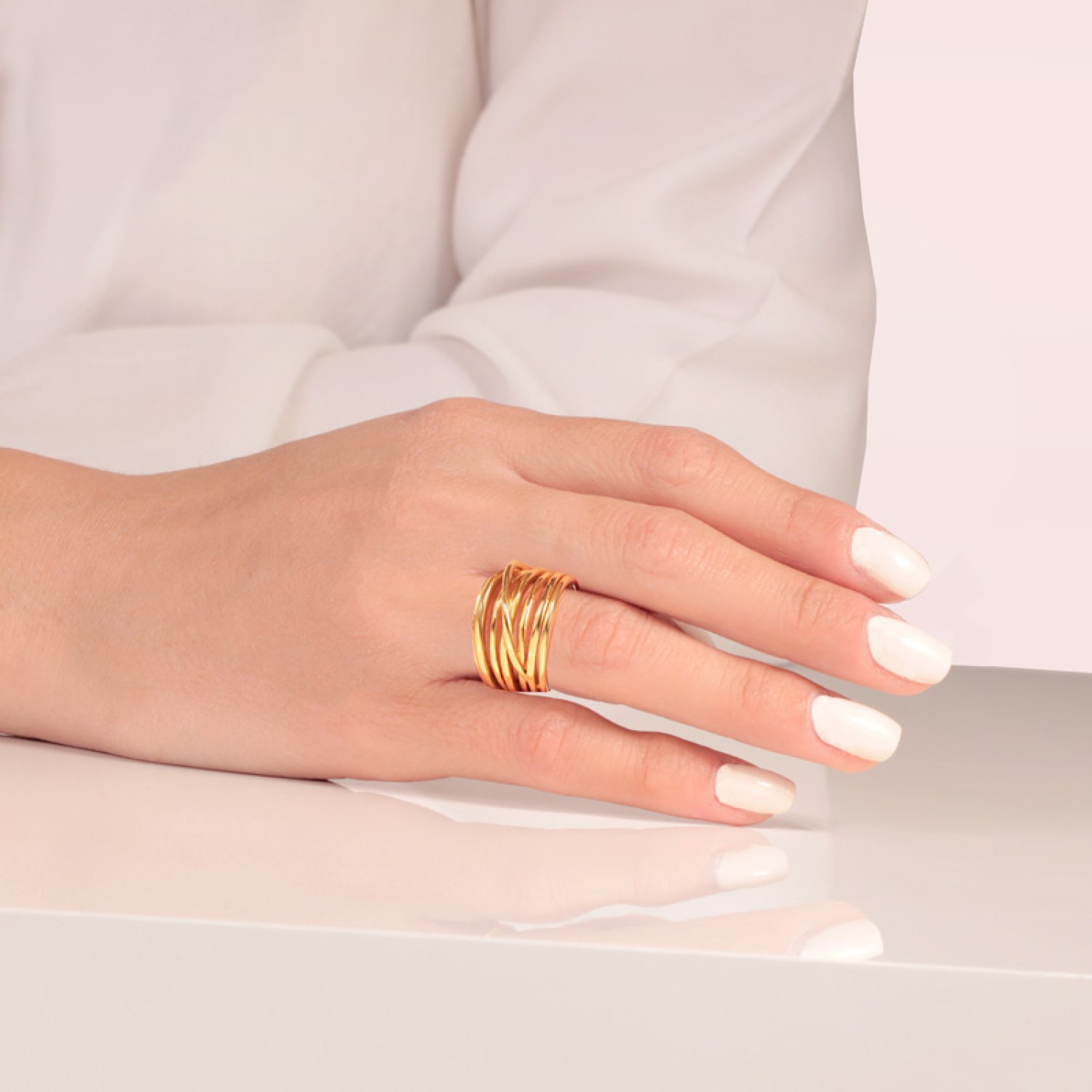 Γυναικείο ατσάλινο επίχρυσο φαρδύ δαχτυλίδι Γραμμές. Ενα υπέροχο κόσμημα που συνδυάζει περίτεχνο σχέδιο και minimal chic στύλ. Το εντυπωσιακό μέγεθος θα στολίσει το δάχτυλο σας αντανακλώντας απαράμιλλη λάμψη με κάθε σας κίνηση. Ιδανικό για να χαρίσει μια νότα πολυτέλειας στις καθημερινές εμφανίσεις σας. Προτείνουμε να το χαρίσετε και ως ενα προσωπικό δώρο με προσιτή τιμή και εξαιρετικό γούστο.