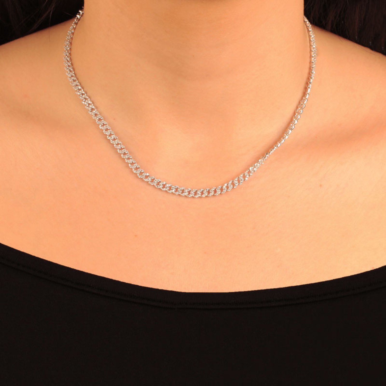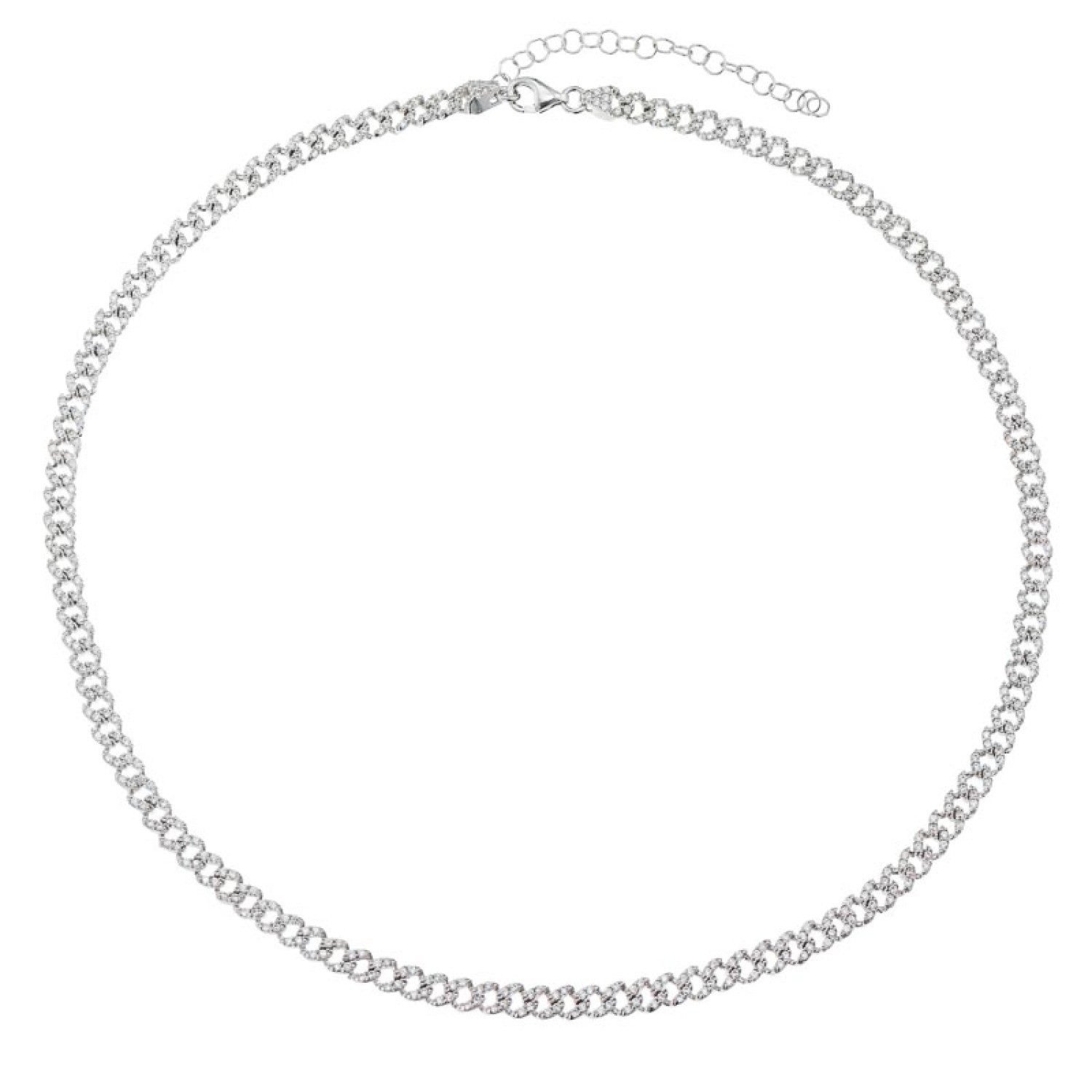 Γυναικείο ασημένιο 925 επιπλατινωμένο Κολιέ Αλυσίδα Gourmet στολισμένη με pave καρφωμένα λευκά ζιργκόν. Ο ορισμός του luxe chic σε ενα ακαταμάχητο κόσμημα που θα λατρέψετε με την πρώτη ματιά. Συνδυάζει μοναδικά εντυπωσιακό μέγεθος και εκτυφλωτική λάμψη. Ενα χειροποιήτο κόσμημα που αξίζει μια θέση στην κοσμηματοθήκη σας καθώς θα το φορέσετε διαχρονικά. Ιδανική επιλογή και για ενα πολυτελής δώρο Επετείου.