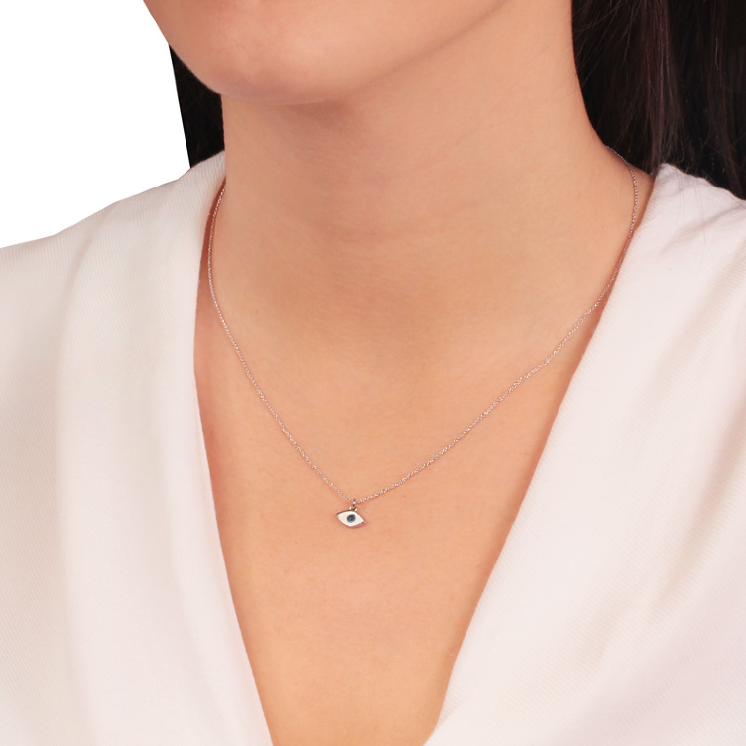 Ασημένιο επιπλατινωμένο κολιέ Μάτι