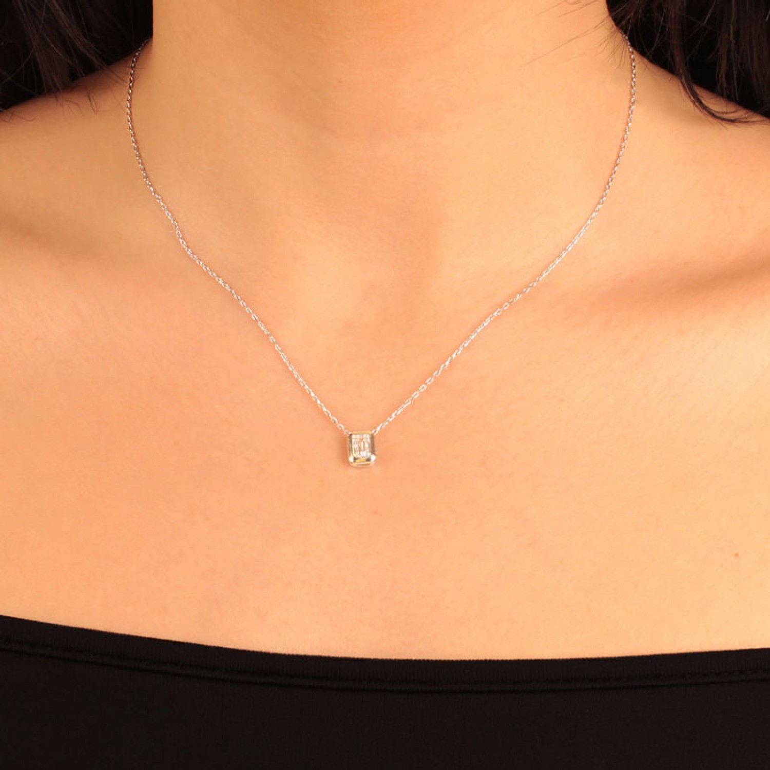 Ασημένιο επιπλατινωμένο κολιέ Μονόπετρο Emerald
