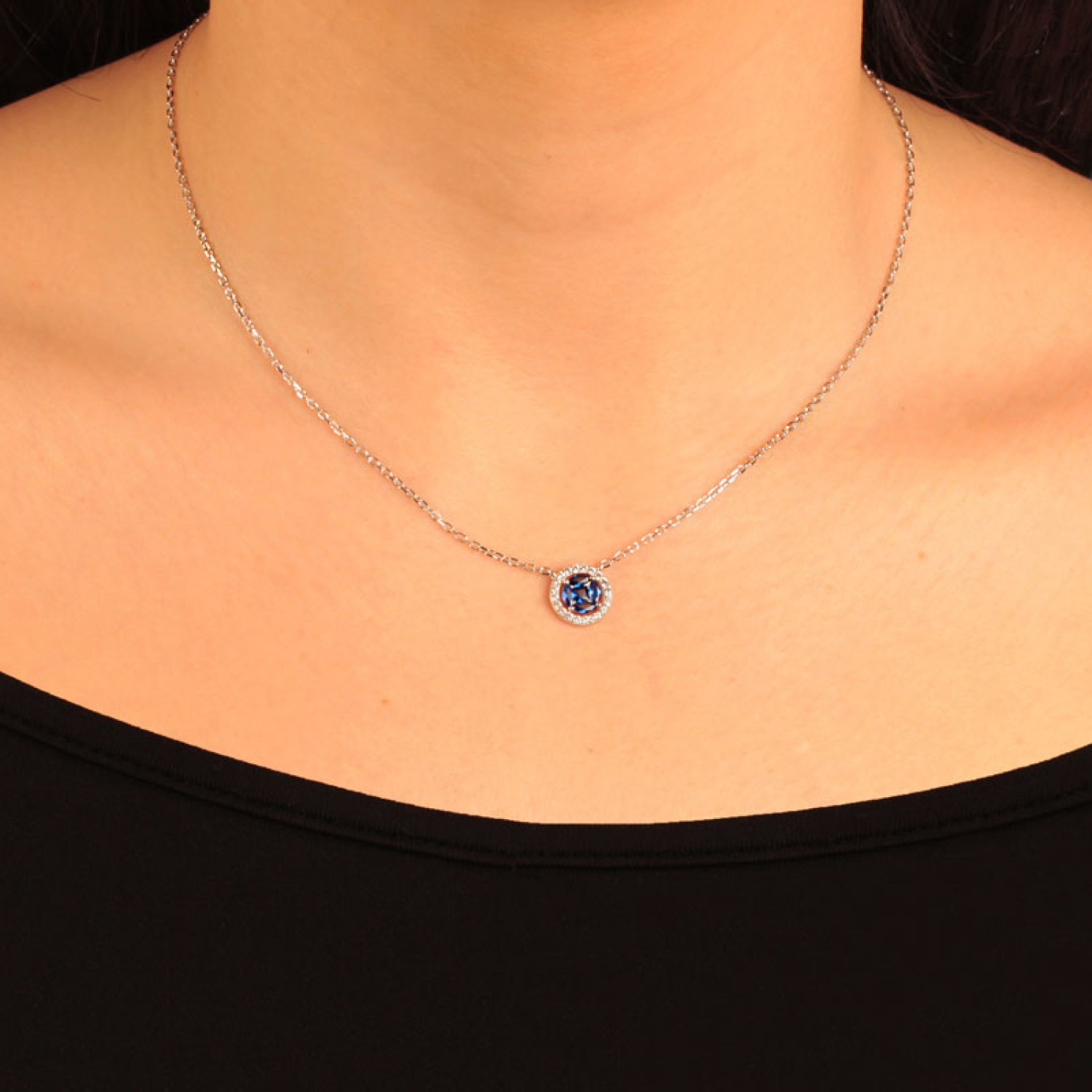 Γυναικείο ασημένιο 925 επιπλατινωμένο κολιέ μενταγιόν Ροζέτα. Το περίτεχνο σχέδιο σχηματίζετε με oval και princess κοπής μπλέ ζιργκόν εσωτερικά, ενω περιμετρικά τονίζετε με brilliant λευκά. Ενα κλασσικό κόσμημα που θα χαρίσει χρώμα και στυλ σε κάθε εμφάνιση. Η αλυσίδα λαιμού διαθέτει προέκταση κρίκους για να το προσαρμόσετε στο ύψος ντεκολτέ που επιθυμείτε και να το συνδυάσετε για layering look.