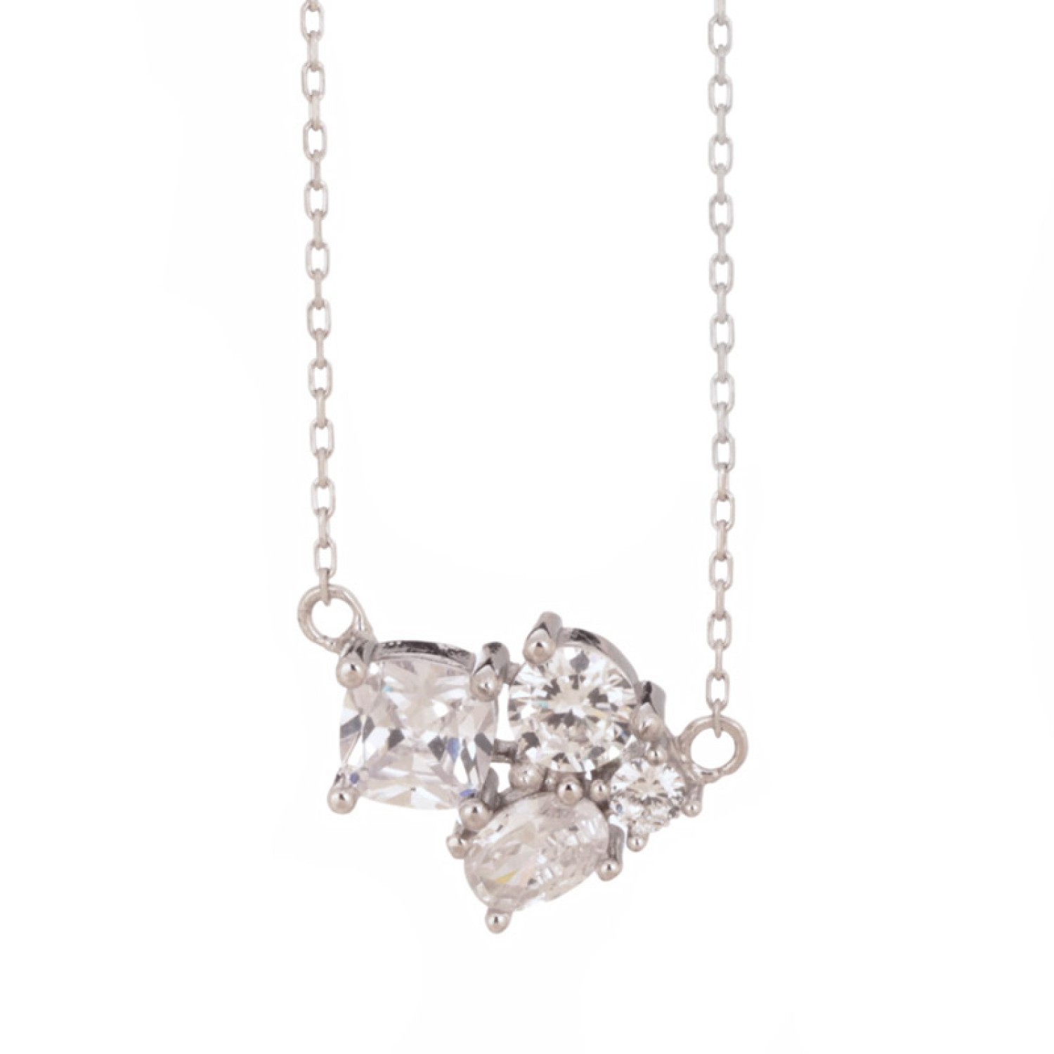 Ασημένιο επιπλατινωμένο κολιέ Σέτ Μονόπετρα