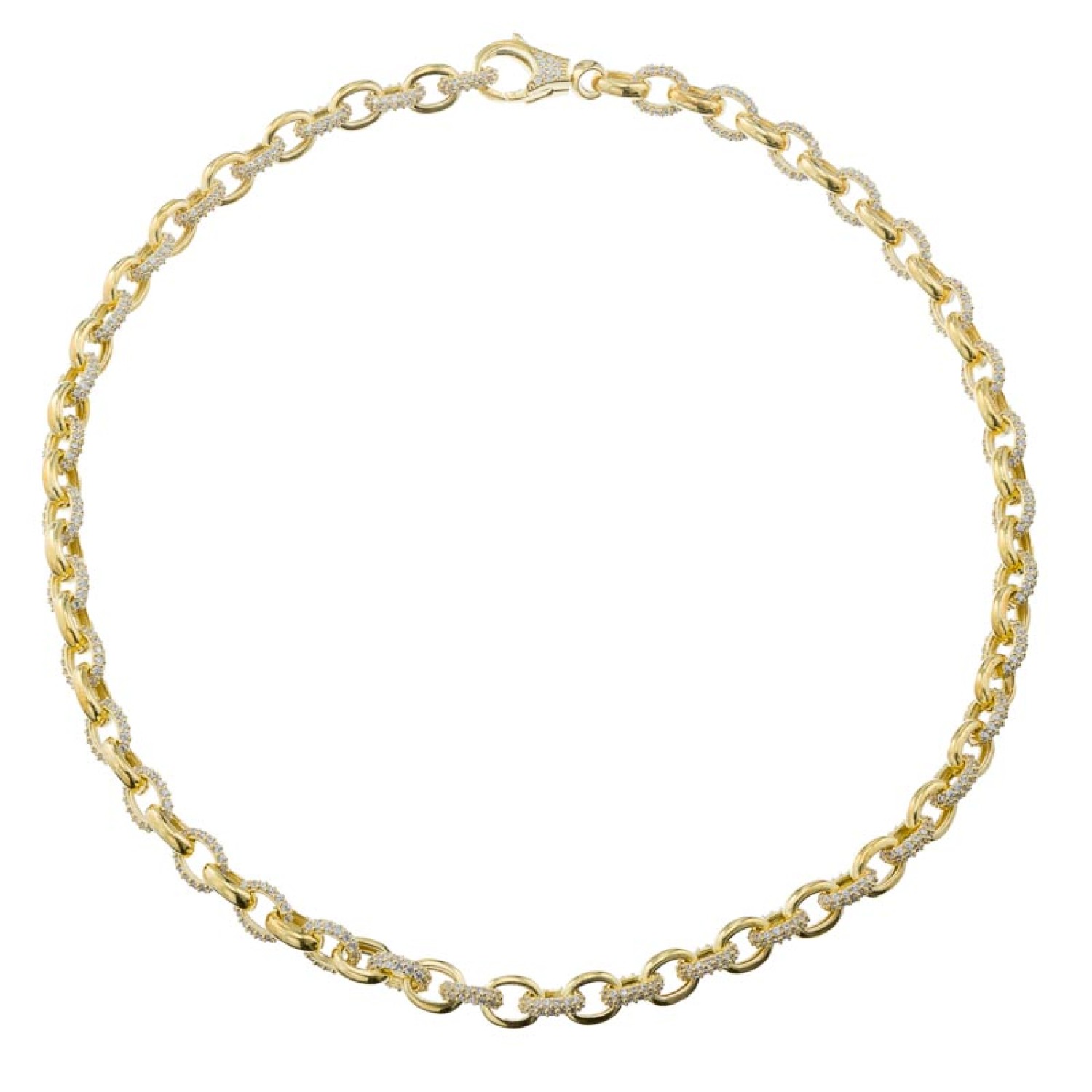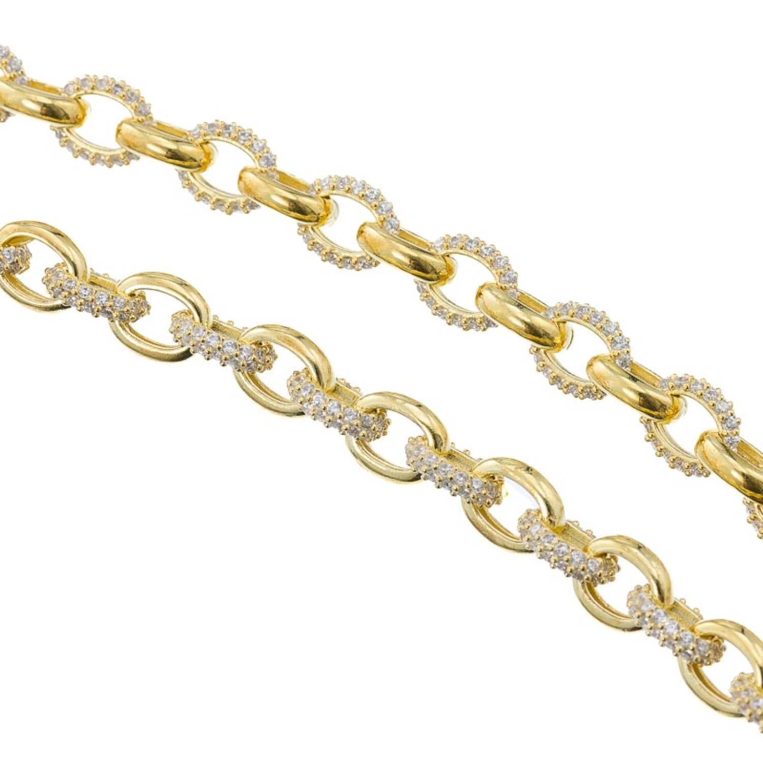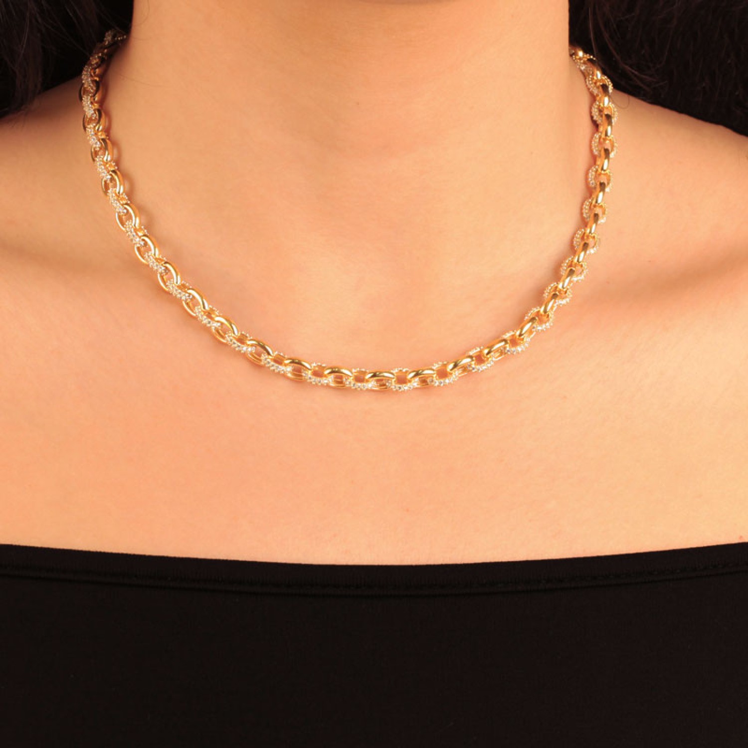 Ασημένιο επίχρυσο κολιέ Αλυσίδα Οβάλ Κρίκοι