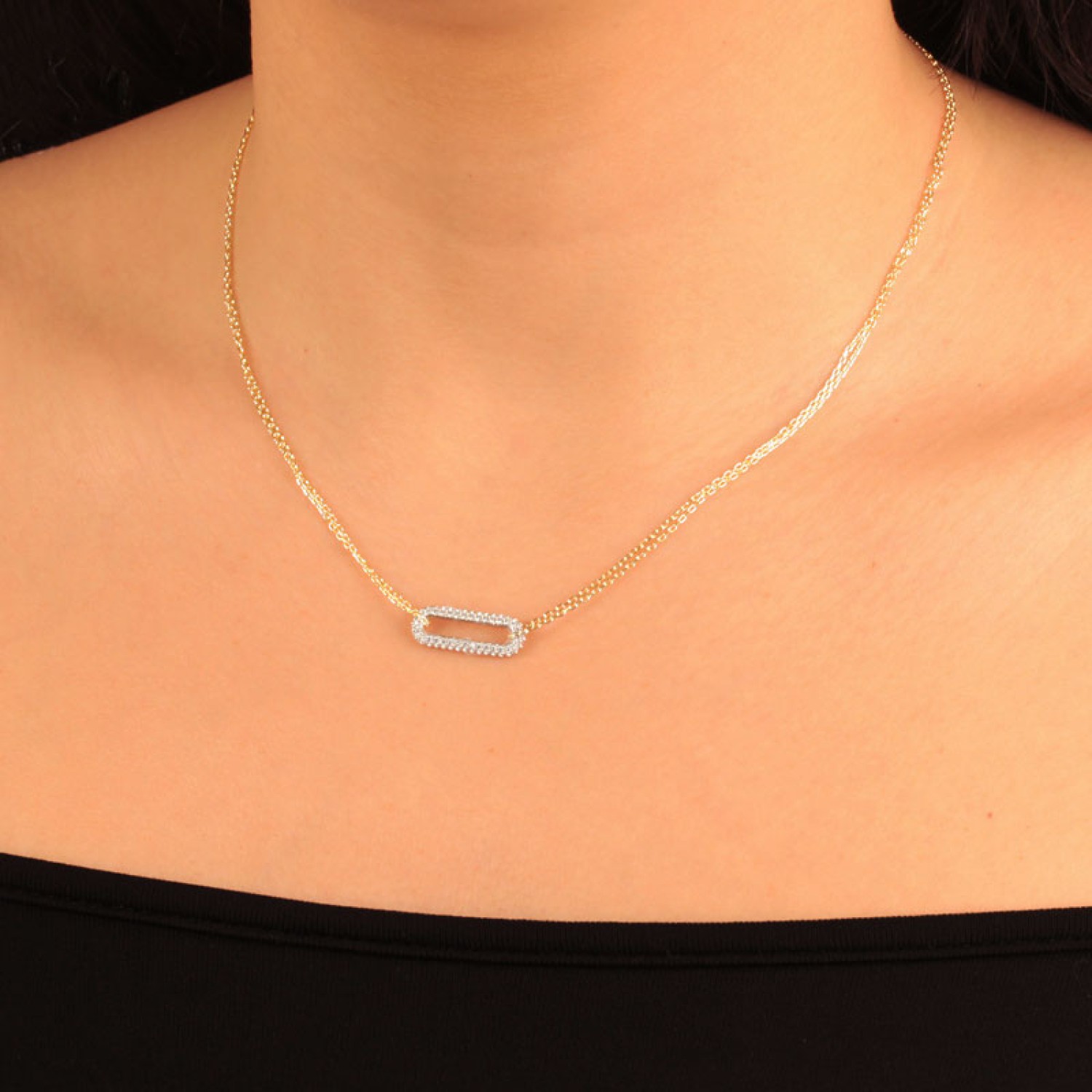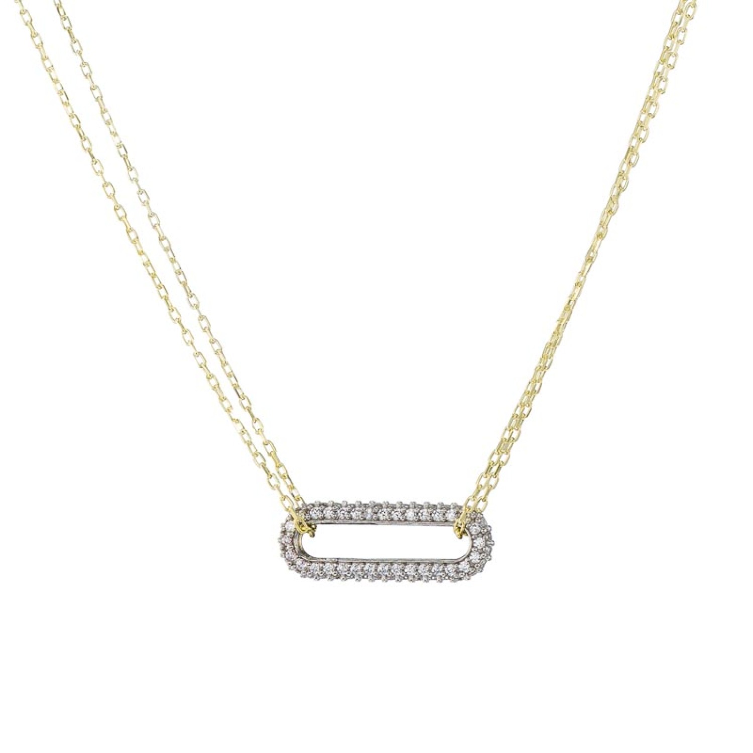 Ασημένιο επίχρυσο κολιέ Αλυσίδες Οβάλ Κρίκος