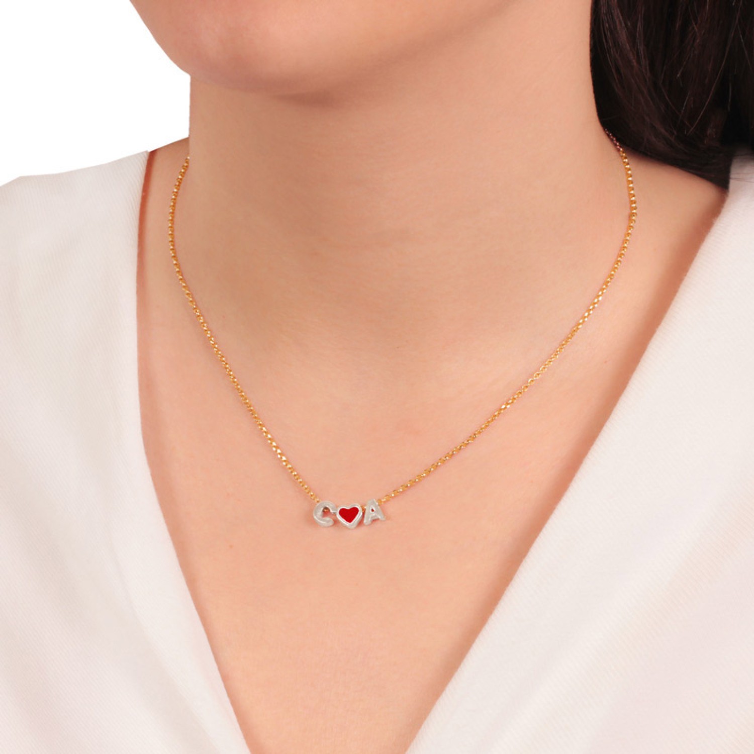 Ασημένιο επίχρυσο κολιέ Αρχικά Καρδιά