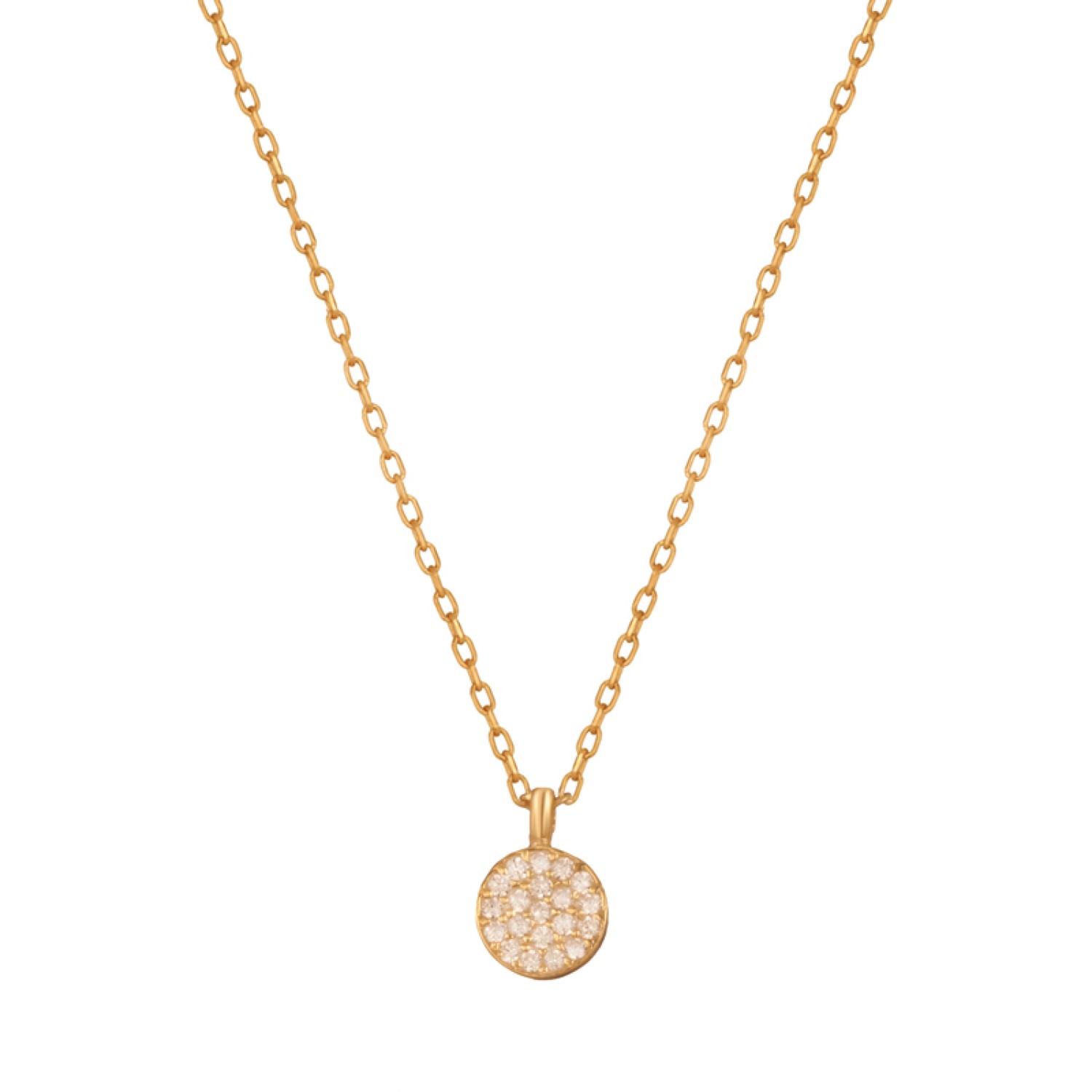 Γυναικείο ασημένιο 925 επίχρυσο κολιέ μενταγιόν Δίσκος. Το κομψό κρεμαστό σε σχήμα Κύκλο είναι στολισμένο με καρφωμένα λευκά ζιργκόν να αντανακλούν λάμψη και πολυτέλεια. Η υπέροχη λεπτομέρεια που θα μεταμορφώσει κάθε chic εμφάνιση μαγνητίζοντας όλα τα βλέμματα θαυμασμού. Φορέστε το μόνο του ή συνδυάστε το με άλλα παρόμοια για ενα layered look. Μια εξαιρετική επιλογή για εσάς ή για ενα προσωπικό δώρο με προσιτή τιμή. Διαθέτει προέκταση κρίκους για να το προσαρμόσετε στο ύψος ντεκολτέ που επιθυμείτε.