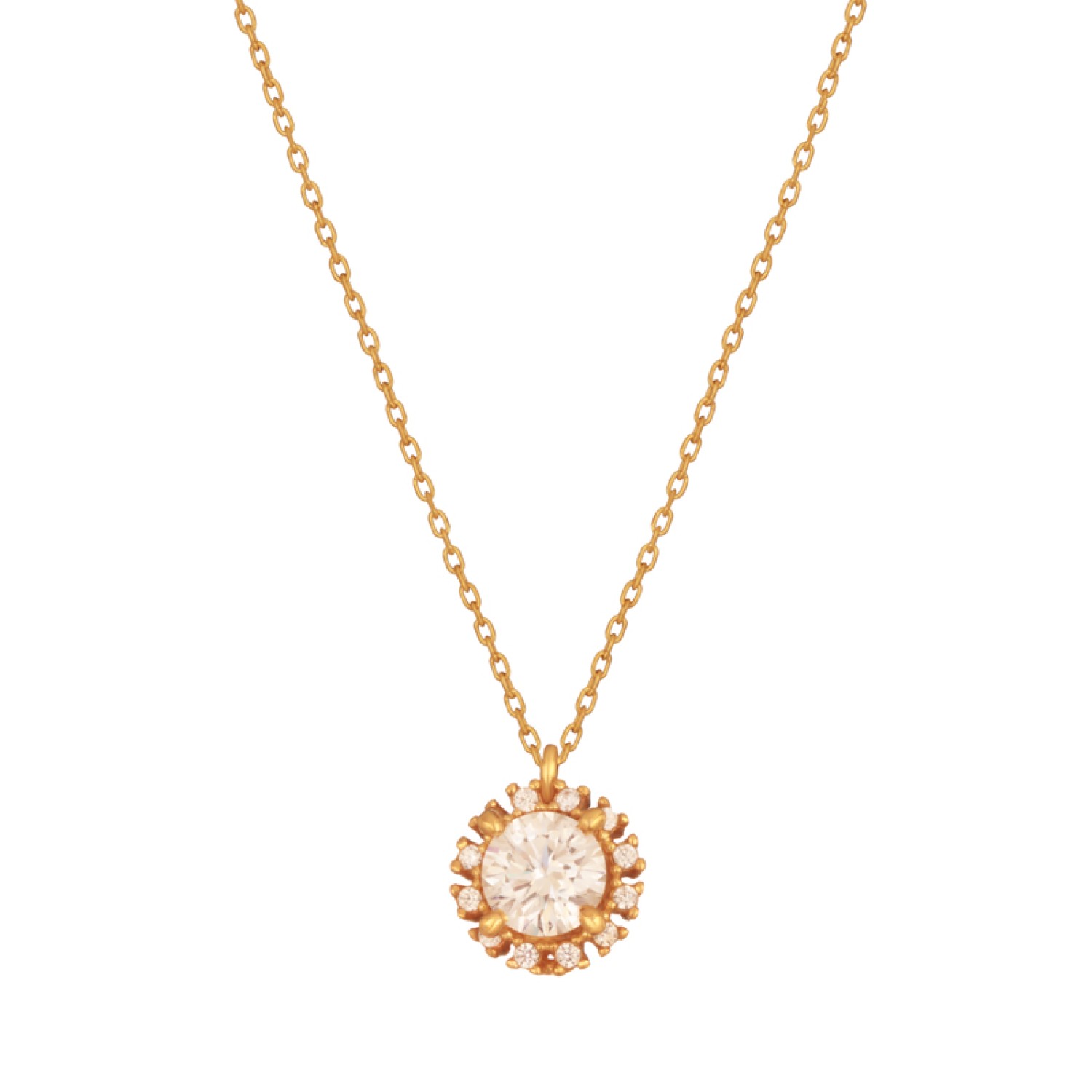 Ασημένιο επίχρυσο κολιέ Μονόπετρο Ροζέτα
