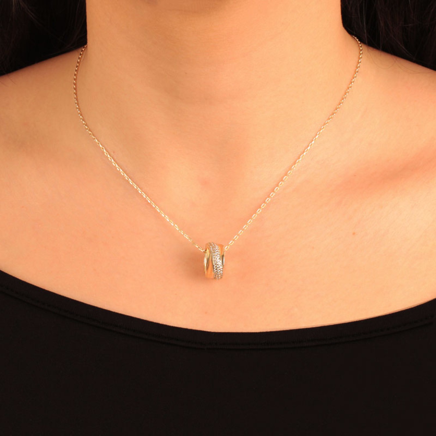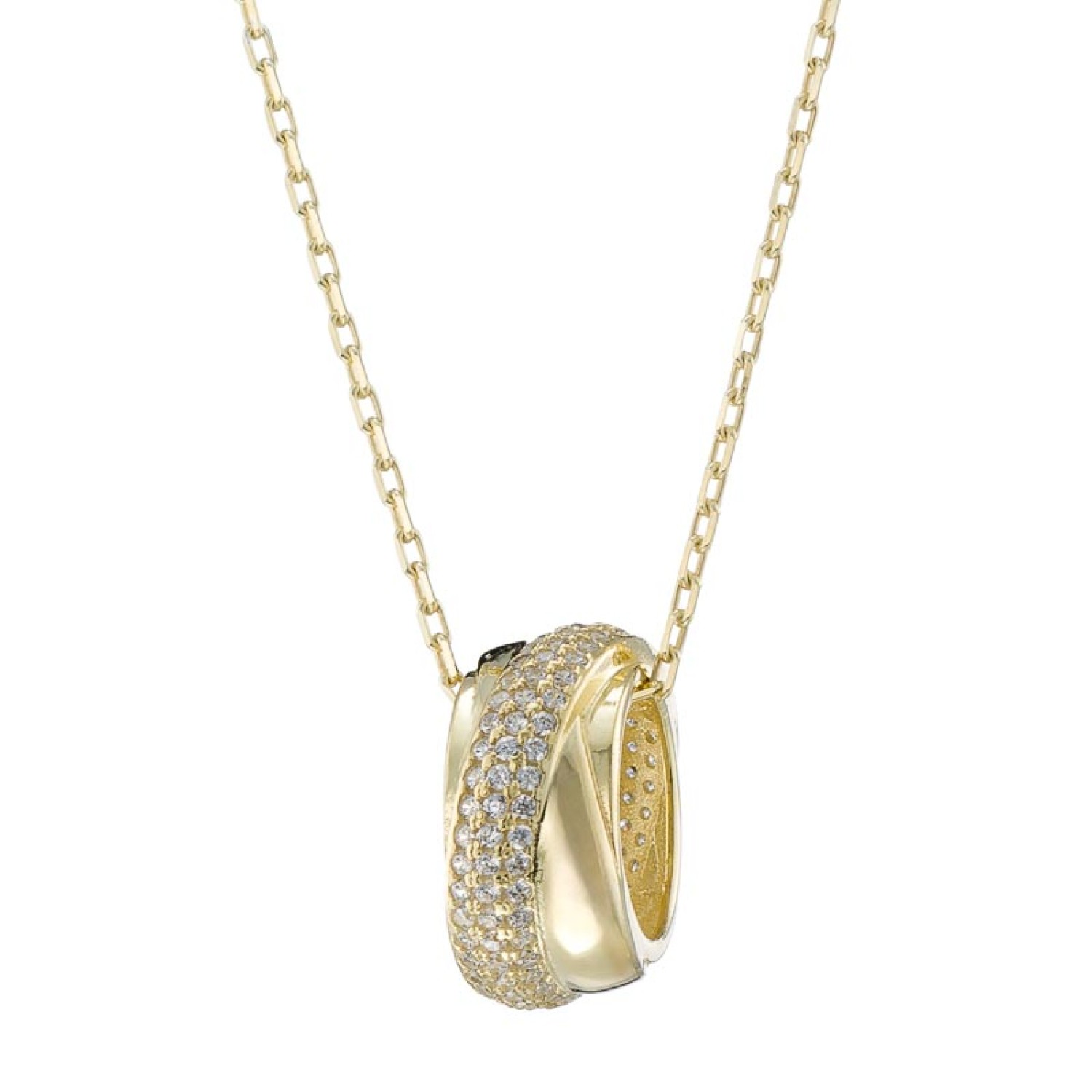 Γυναικείο ασημένιο 925 επίχρυσο σε 18 καράτια χρυσό κολιέ μενταγιόν 3D Ροδέλα. Το φίνο κρεμαστό είναι στολισμένο κατα μήκος με pave καρφωμένα brilliant κοπής λευκά Ζιργκόν. Ενα κλασσικό κόσμημα με κομψότητα και διαχρονικότητα που θα χαρίσει απαράμιλλη λάμψη στις chic εμφανίσεις σας. Η αλυσίδα λαιμού διαθέτει προέκταση κρίκους για να το προσαρμόσετε στο ύψος ντεκολτέ που επιθυμείτε και να το συνδυάσετε με αλλα για fashion layering look.