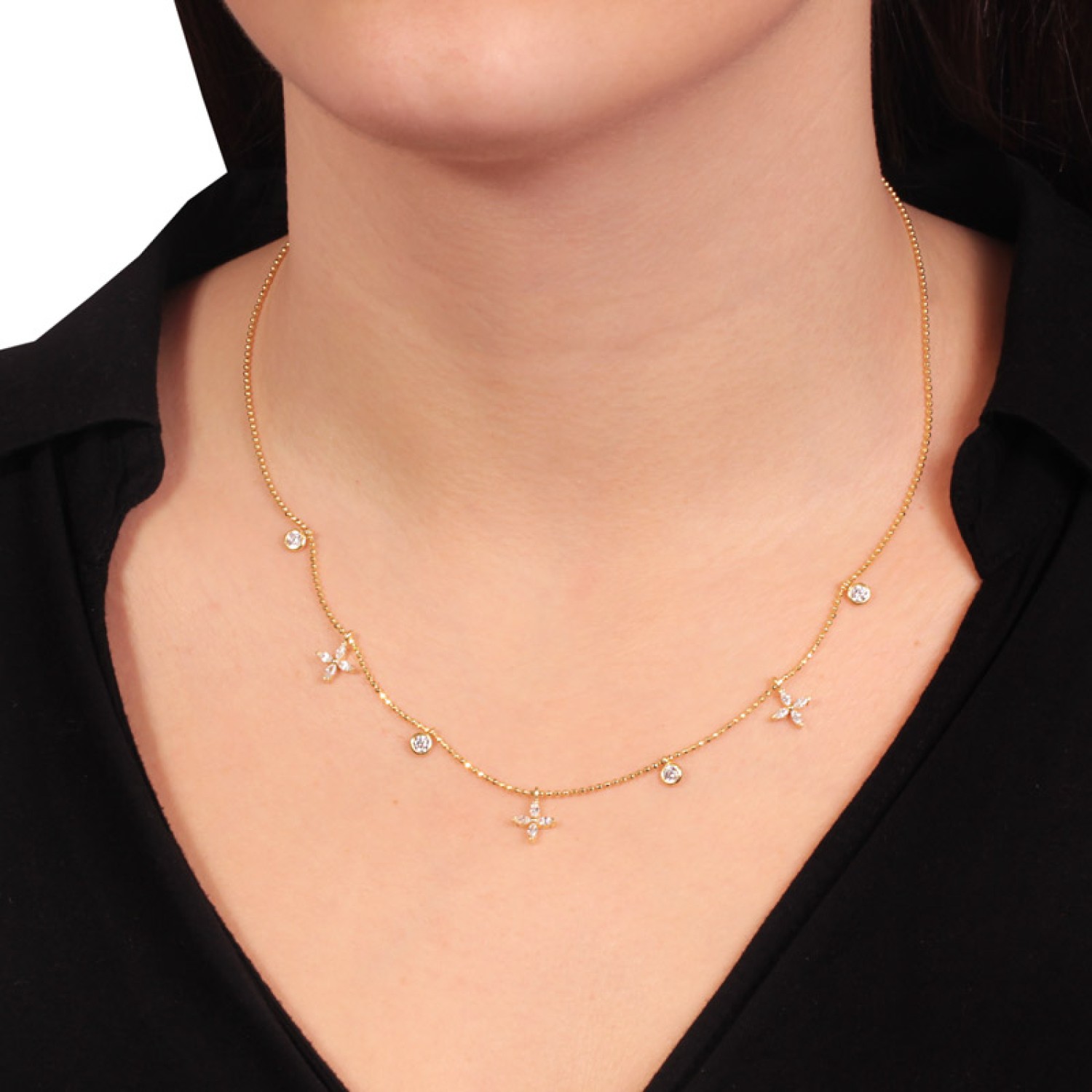 Ασημένιο επίχρυσο κολιέ Τετράφυλλα Μονόπετρα