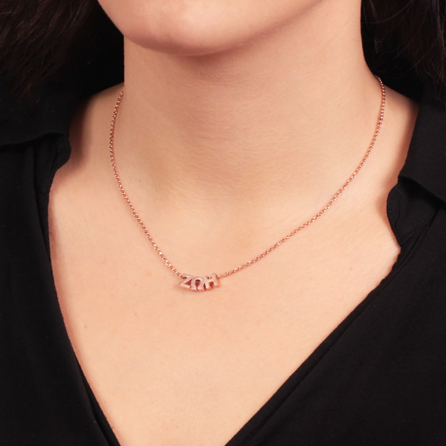 Ασημένιο ρόζ επίχρυσο κολιέ 3 Γράμματα