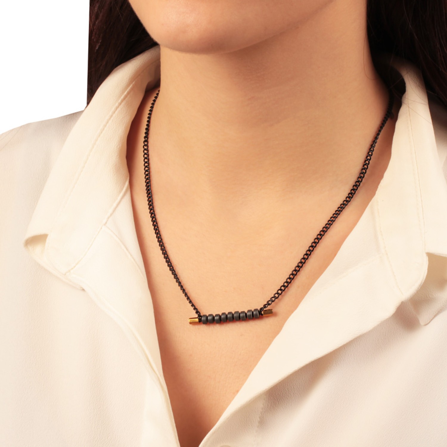 Ατσάλινο κολιέ Αλυσίδα Μπάρα Αιματίτες