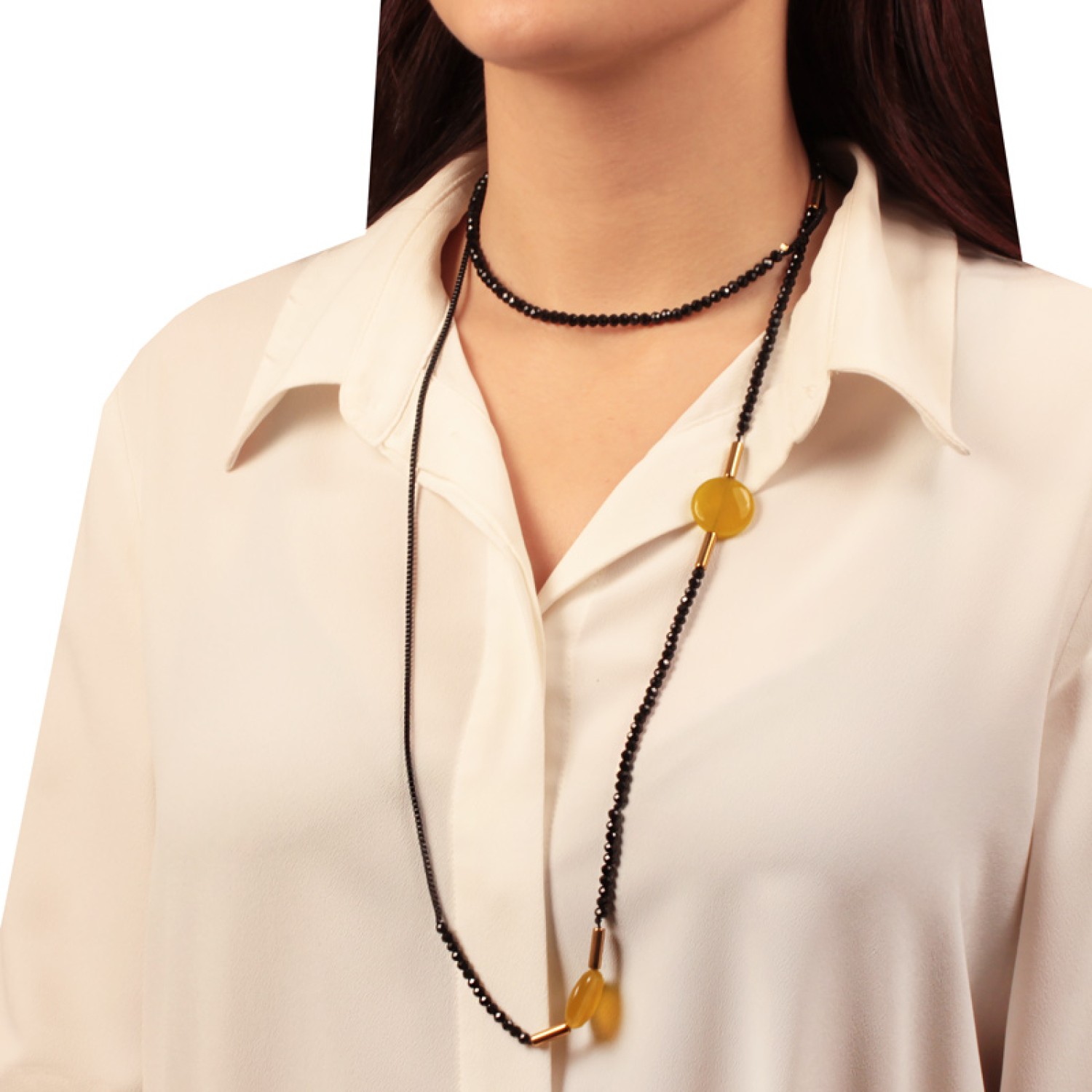 Ατσάλινο κολιέ Πέτρες Νεφρίτη Κρύσταλλα