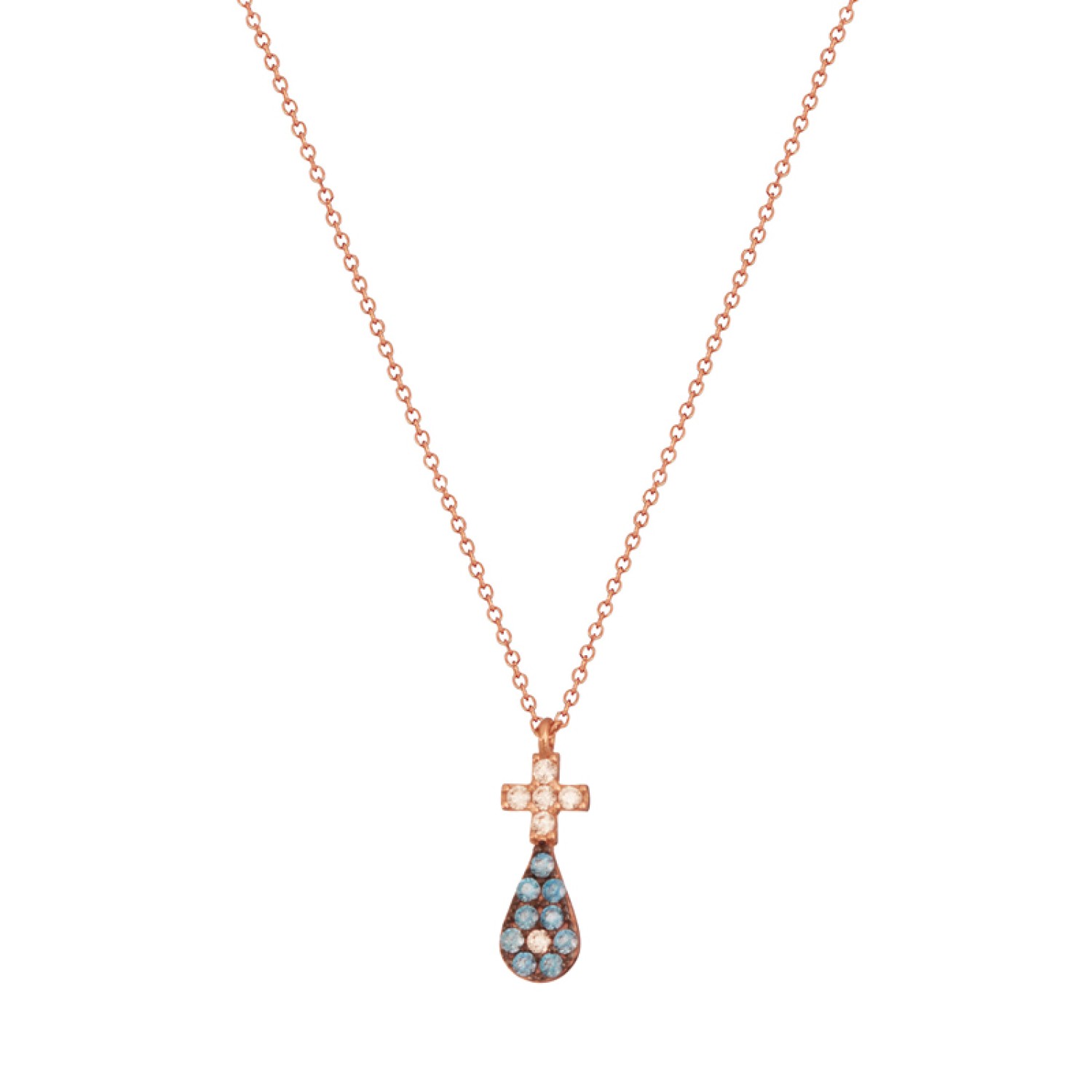 Γυναικείο ρόζ χρυσό 14k κολιέ Σταυρός Μάτι