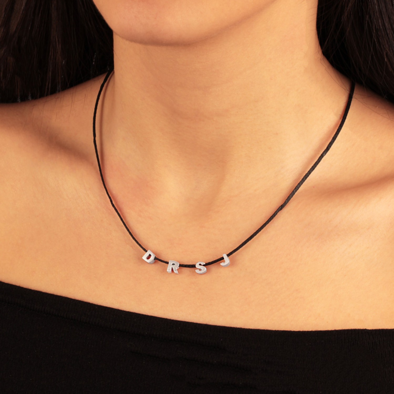 Κολιέ κορδόνι ασημένια Γράμματα Αγγλικά