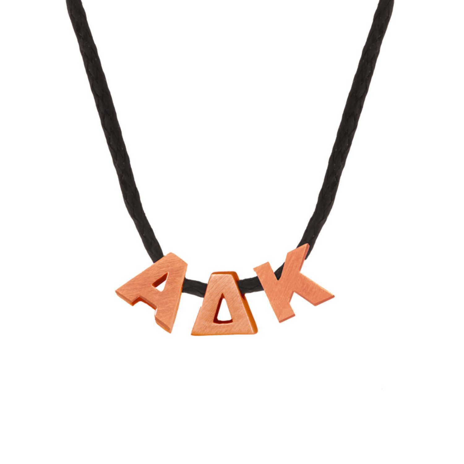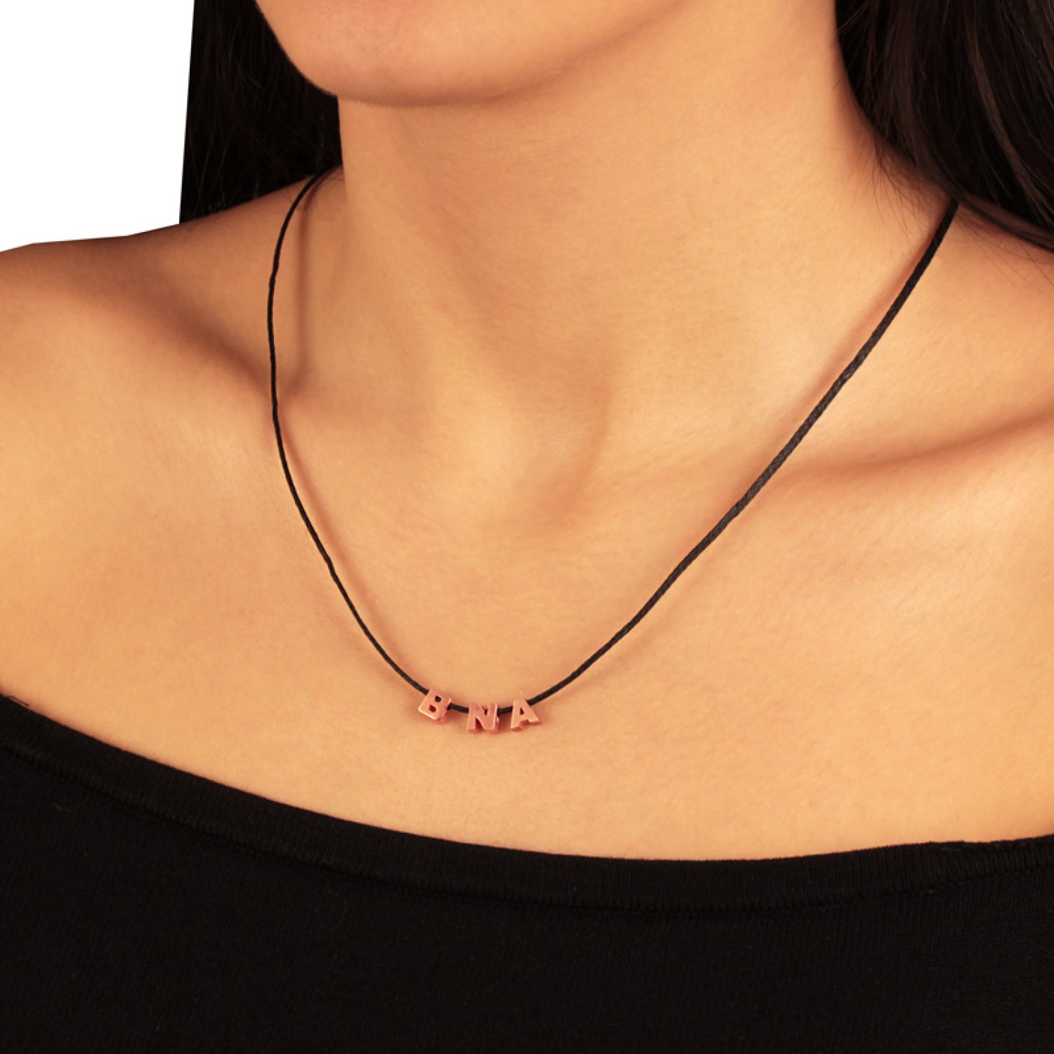 Κολιέ κορδόνι ασημένια ρόζ Γράμματα Ελληνικά
