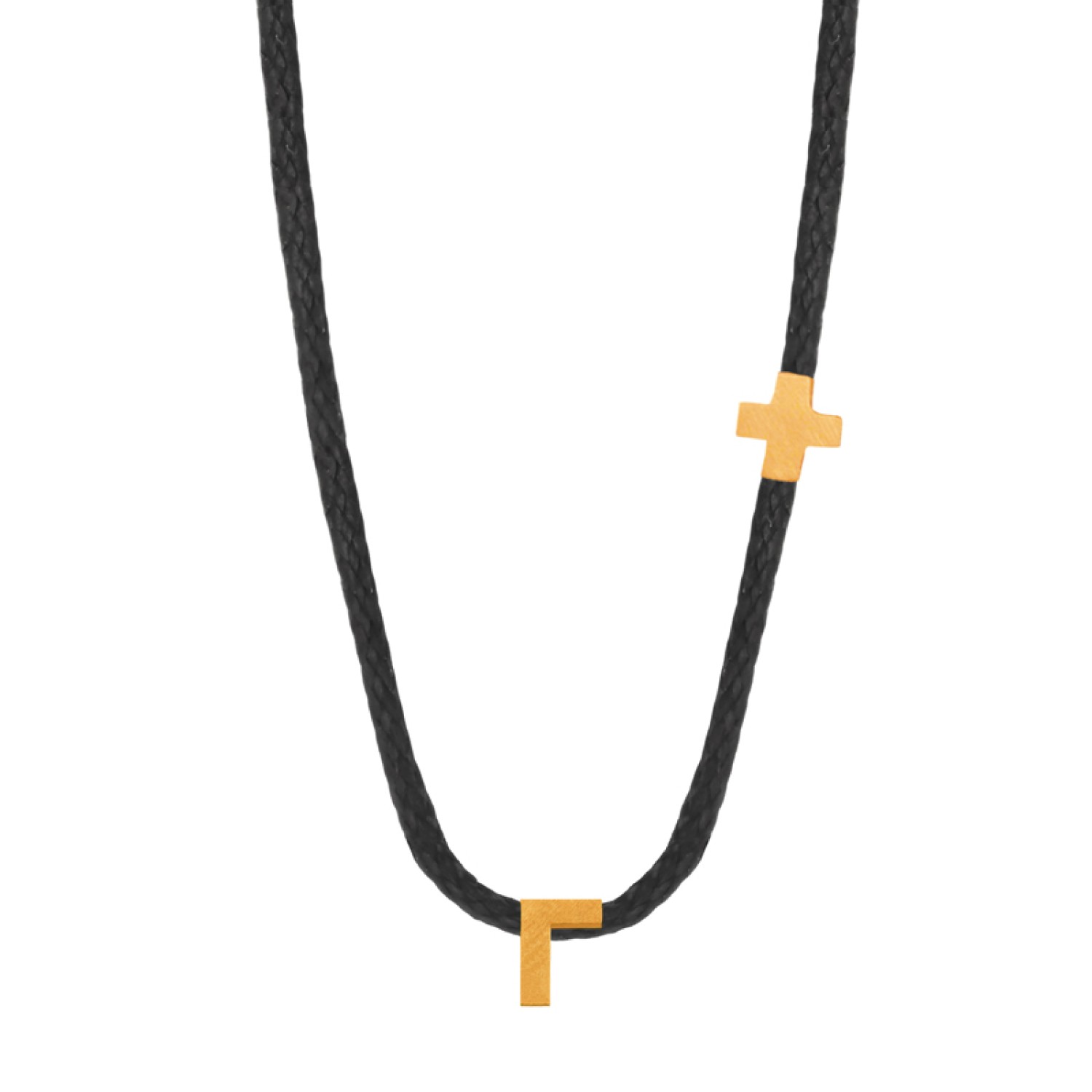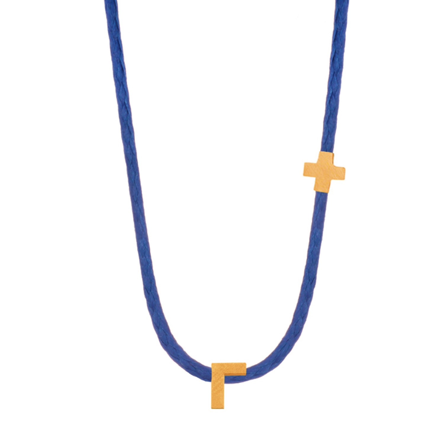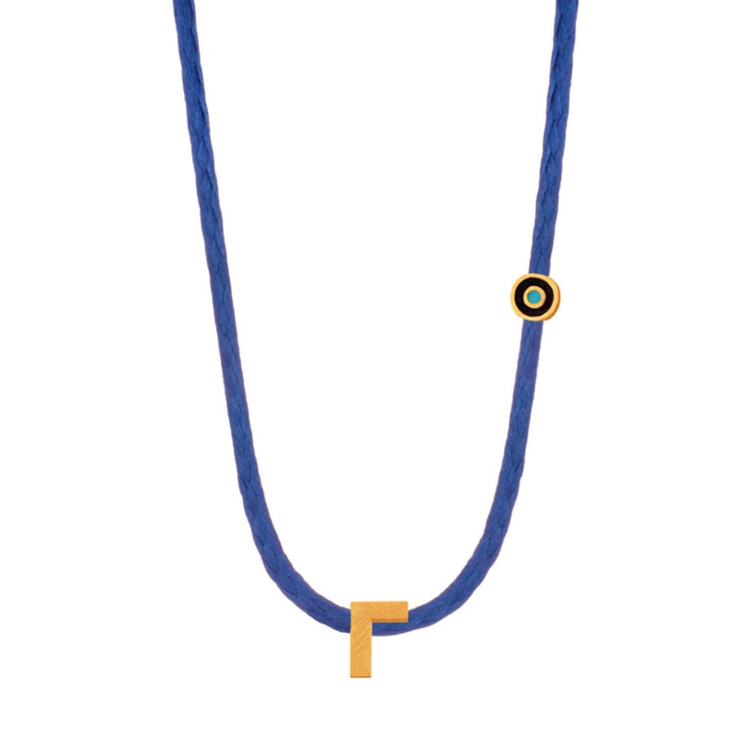 Κολιέ κορδόνι ασημένιο επίχρυσο Γράμμα Γ