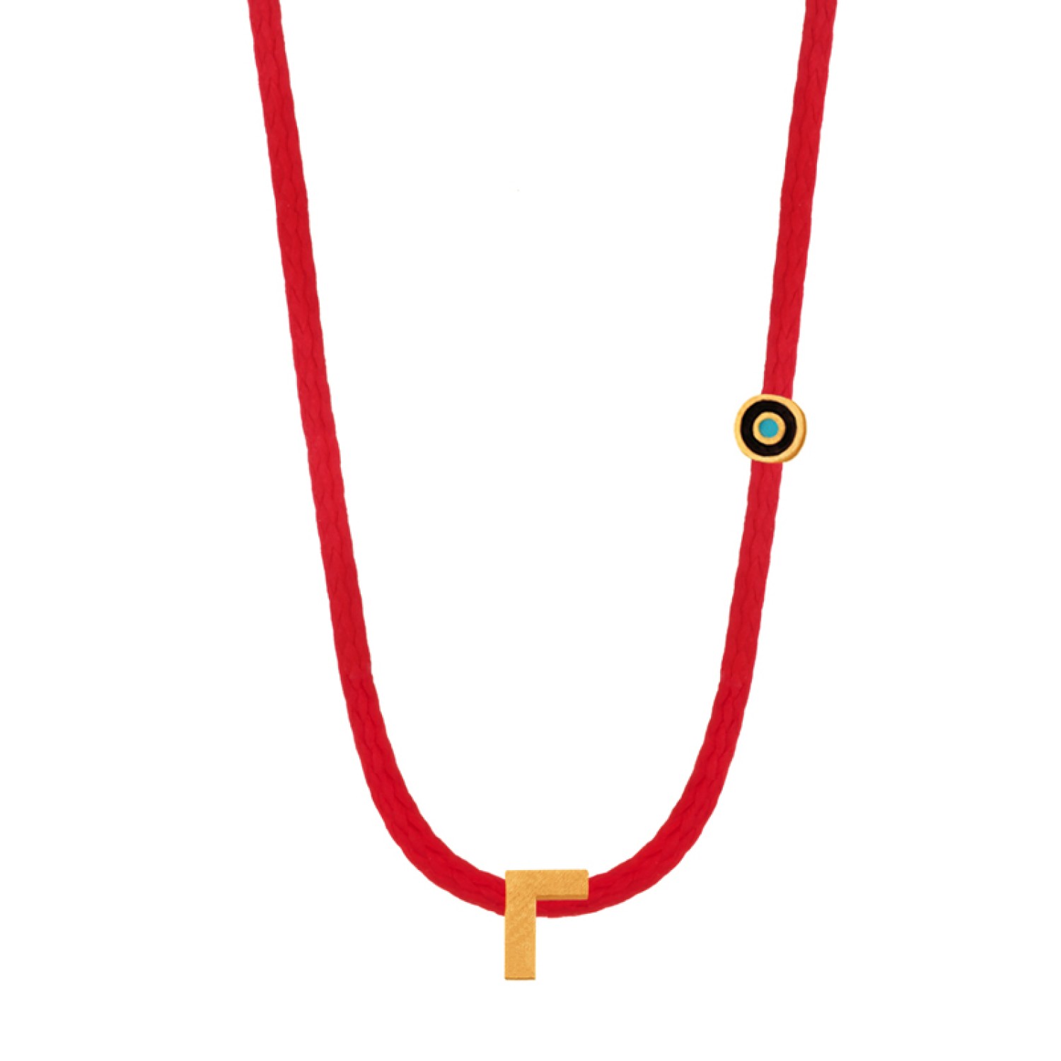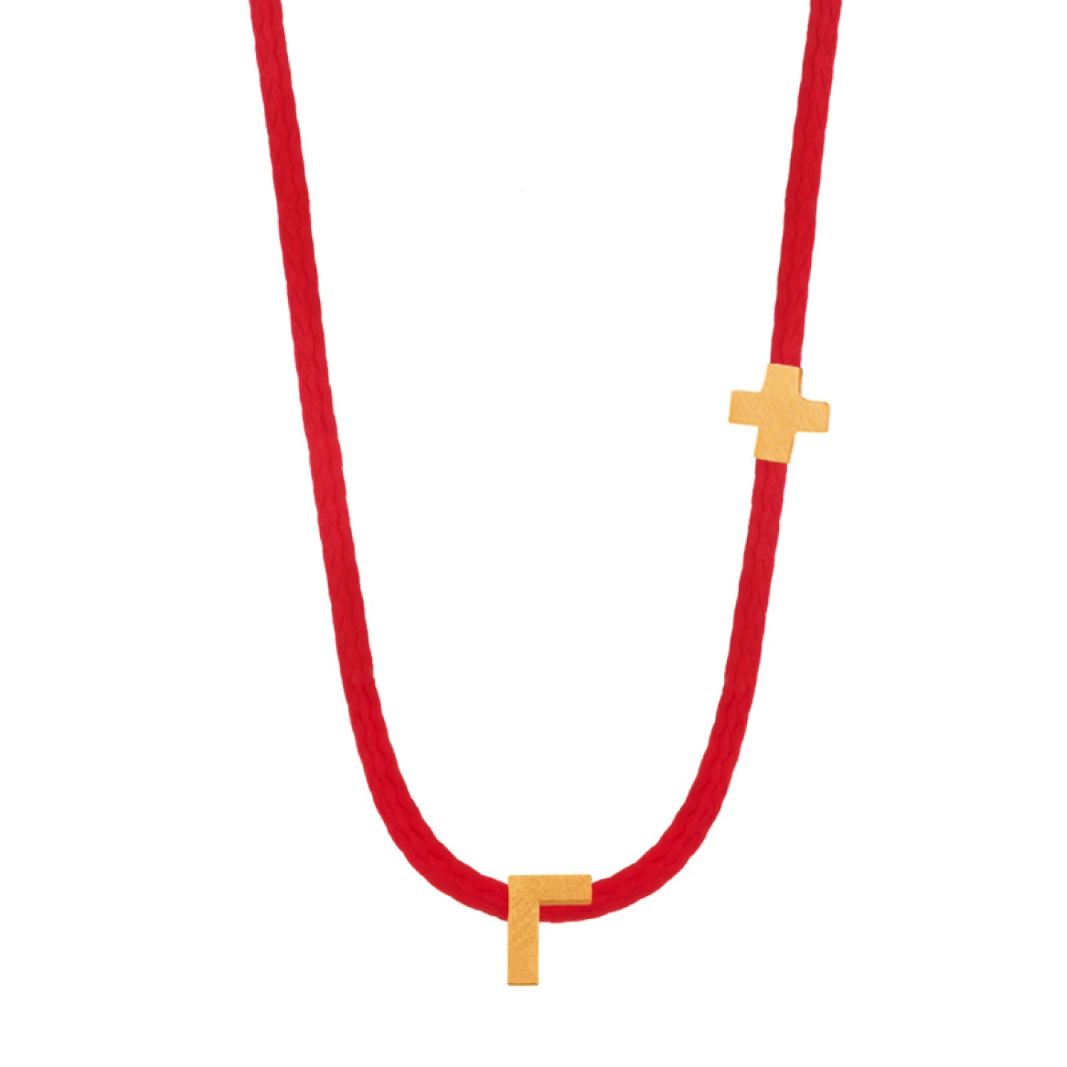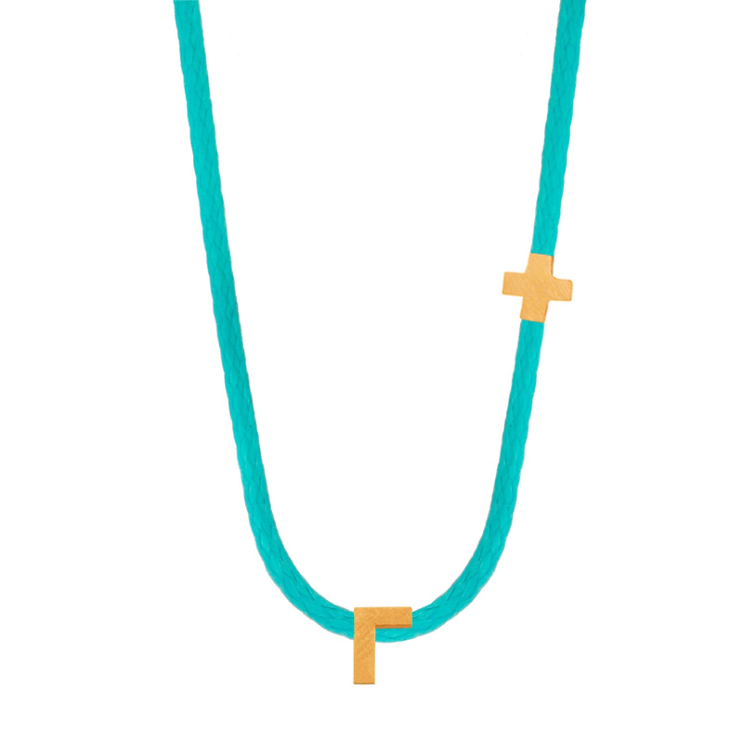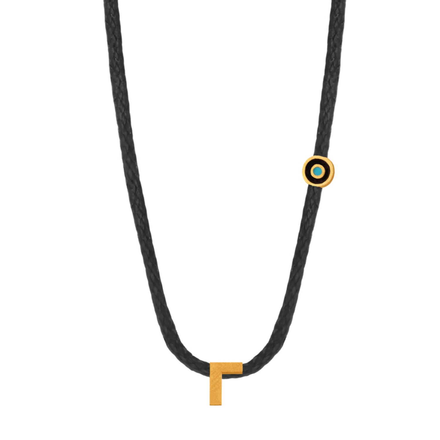 Κολιέ κορδόνι ασημένιο επίχρυσο Γράμμα Γ