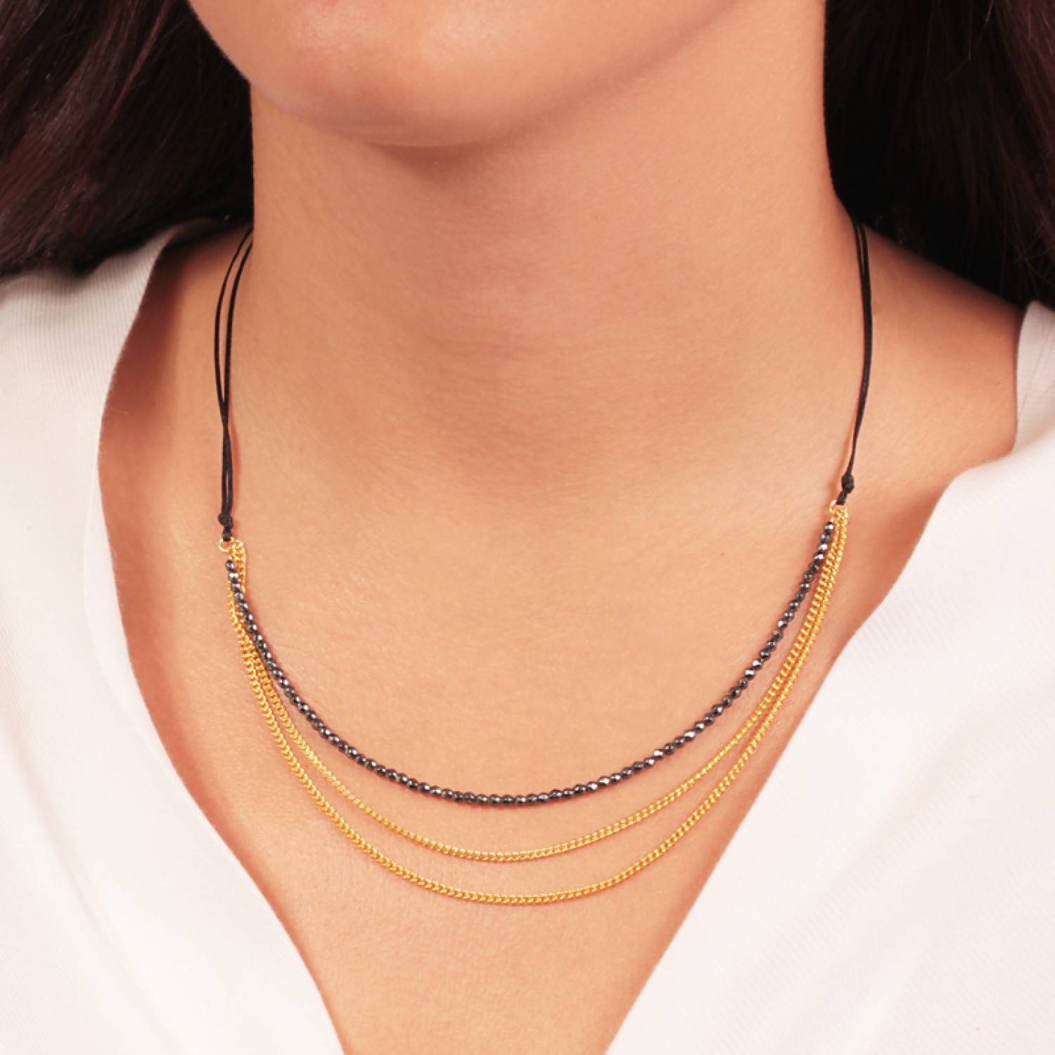 Κολιέ κορδόνι Σπινέλιο ασημένια επίχρυση Αλυσίδα
