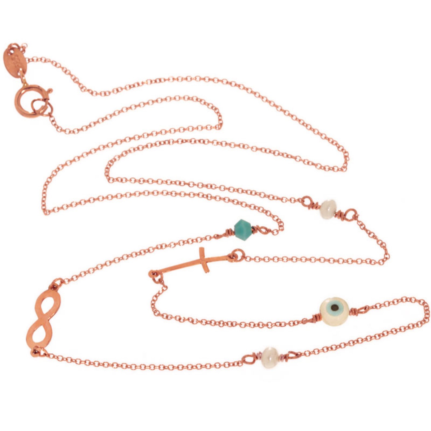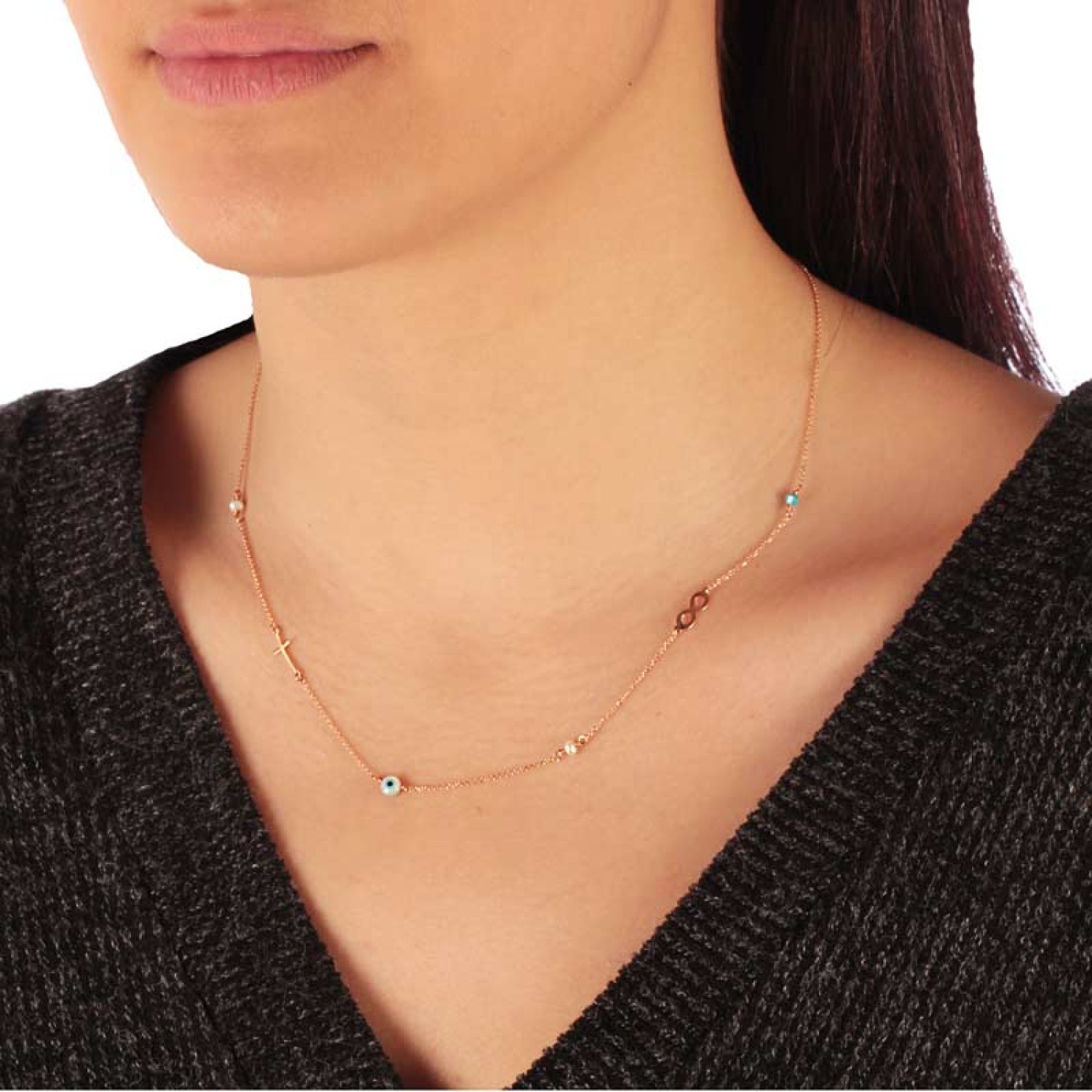 Ρόζ χρυσό κολιέ 14k Σταυρός Μάτι 'Απειρο