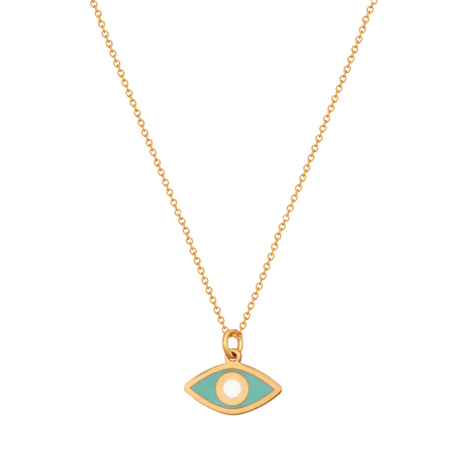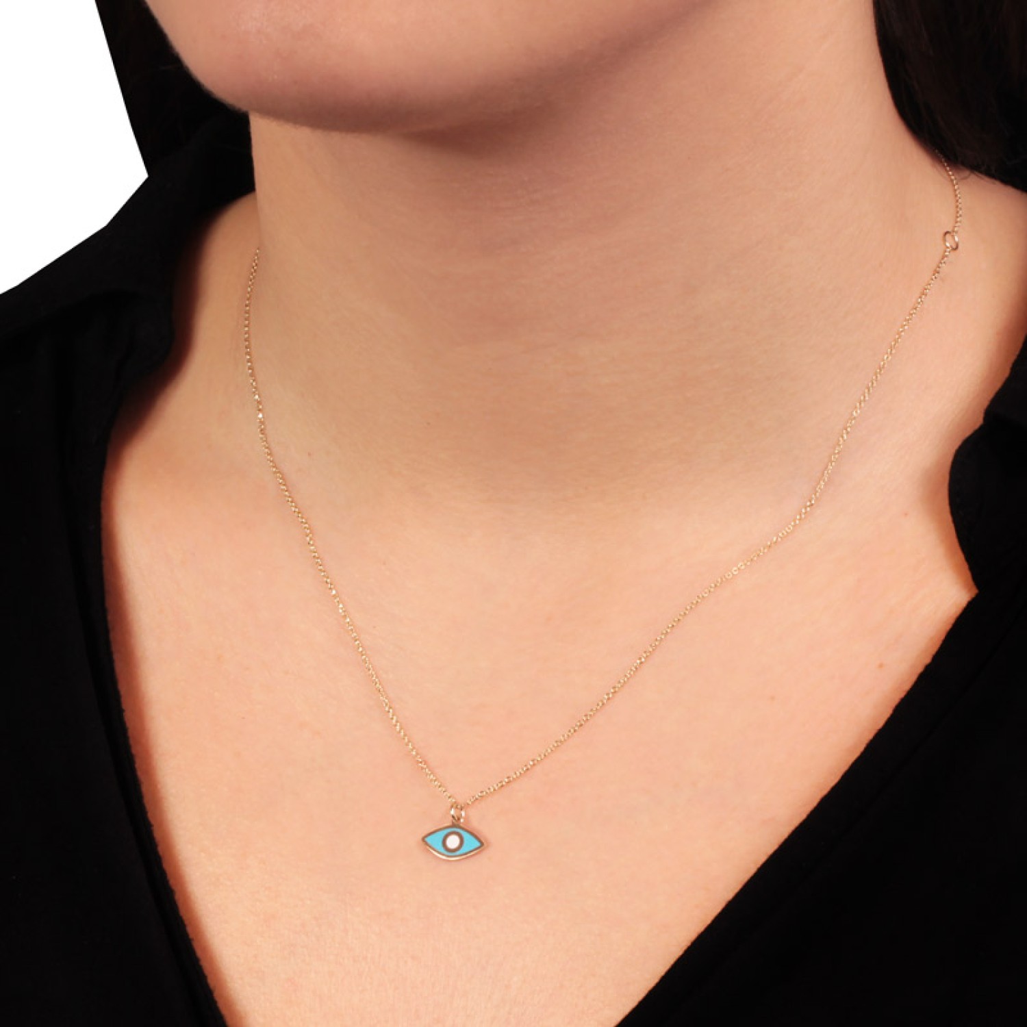 Γυναικείο χρυσό 9 καράτια κολιέ Αλυσίδα μενταγιόν Μάτι. Το φίνο κρεμαστό είναι χειροποιήτα φιλοτεχνημένο με τιρκουάζ και λευκό σμάλτο να χαρίζουν λεπτομέρεια και λάμψη. Ενα κλασσικό σύμβολο Τύχης και Προστασίας σε ενα chic κόσμημα που θα φορέσετε παντοτινά. Τόσο το σχήμα όσο το μέγεθος το κάνουν ιδανικό για να το συνδυάσετε και με αλλα για ενα fashion layered look. Αξίζει να αποκτήσετε αυτο τον αληθινό θησαυρό με συναισθηματική αξία που θα αγαπήσετε με την πρώτη ματιά. Μια εξαιρετική επιλογή και για ενα προσωπικό δώρο με πολυτέλεια που θα μείνει αξέχαστο. Διαθέτει ενδιάμεσο κρίκο για να το προσαρμόσετε στο ντεκολτέ σας.