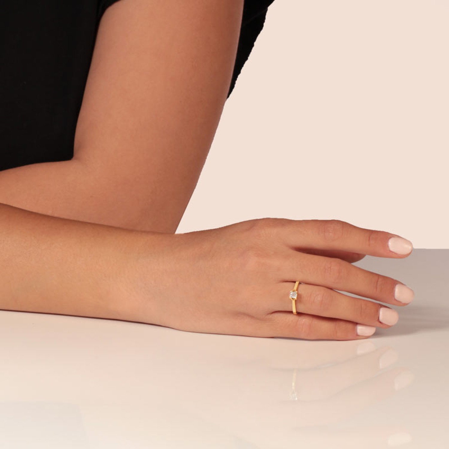 Γυναικείο χρυσό 14 καράτια δαχτυλίδι Μονόπετρο με brilliant-cut λευκό ζιργκόν. Αυτο το συμβολικό και χειροποιήτο κόσμημα είναι το όνειρο κάθε γυναίκας. Συνδυάζει κλασσικό σχέδιο και κομψό μέγεθος. Ενω οι τέσσερις ακτίνες αγκαλιάζουν το κέντρο ακτινοβολώντας λάμψη με κάθε σας κίνηση. Το διαχρονικό δαχτυλίδι σαν ορόσημο μιας παντοτινής Υπόσχεση και Δέσμευσης. Μια εξαιρετική επιλογή για πρόταση Αρραβώνων ή Γάμου με πολυτέλεια και chic στύλ.