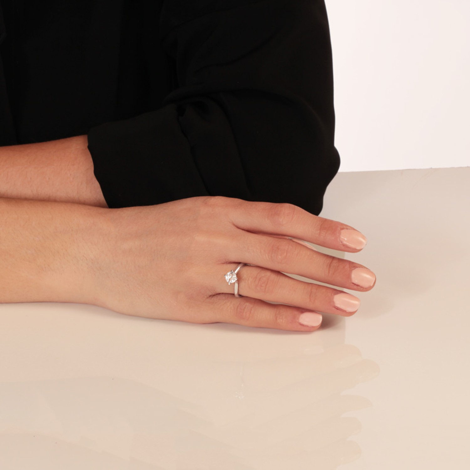 Γυναικείο λευκόχρυσο 14 καράτια δαχτυλίδι Μονόπετρo σχέδιο Φλόγα με brilliant-cut λευκό ζιργκόν. Ενα κλασσικό κόσμημα που συνδυάζει κομψότητα και διαχρονικότητα, αληθινή και συναισθηματική αξία. Το στρογγυλό σχήμα της πέτρας συμβολίζει την αιώνια Αγάπη σας και θα γίνει σίγουρα ο παντοτινός θησαυρός σας. Το σαγηνευτικό δαχτυλίδι που θα αντανακλά απαράμιλλη λάμψη με κάθε σας κίνηση και θα κλέβει τις εντυπώσεις κάθε φορά. Το έμβλημα που θα μαρτυρά παντοτινή Υπόσχεση, Δέσμευση και Πίστη με την πρώτη ματιά. Μια εξαιρετική επιλογή για πρόταση Αρραβώνων, Γάμο ή Επέτειο με πολυτέλεια και φλογερό στύλ.