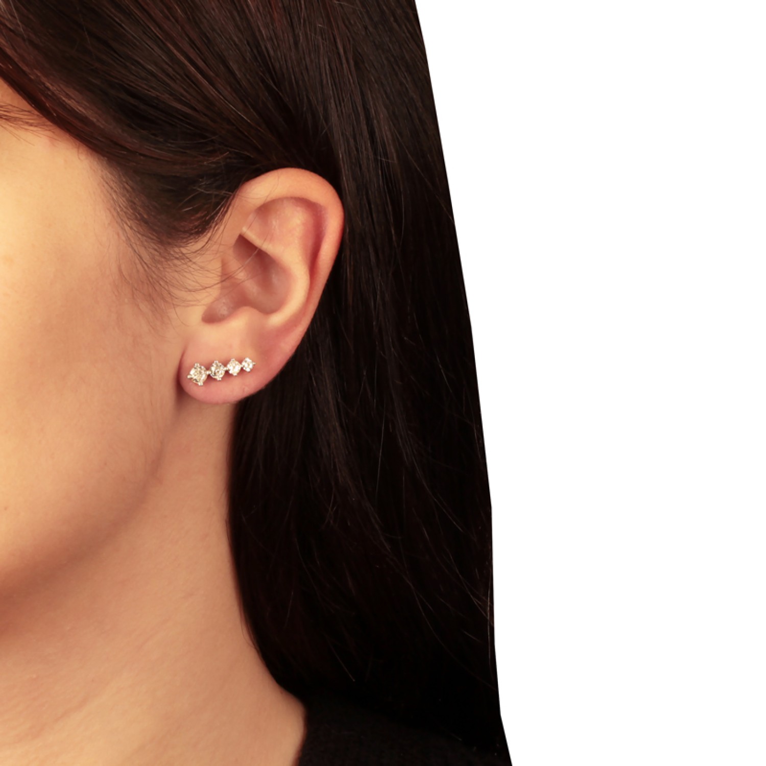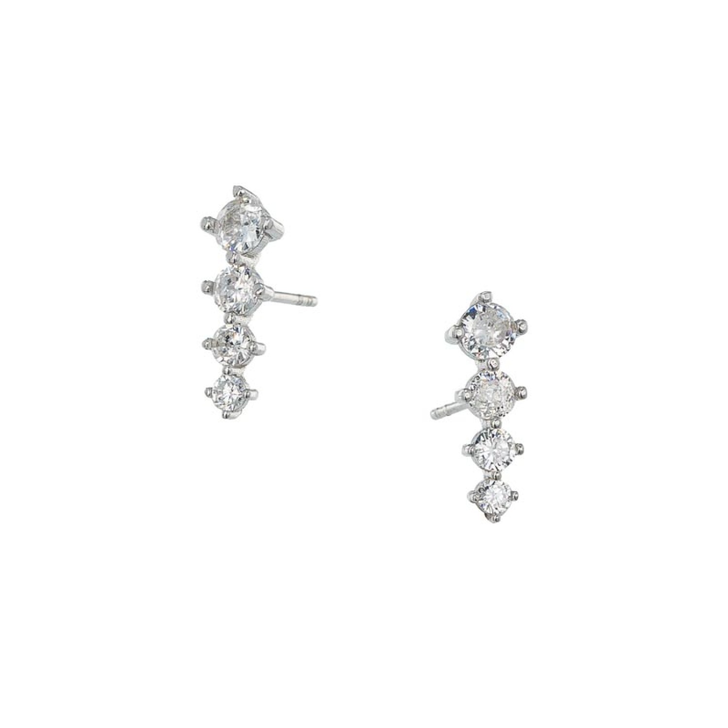 Γυναικεία ασημένια 925 επιπλατινωμένα τρυπητά καρφωτά σκουλαρίκια Σειρέ τέσσερα Μονόπετρα. Το περίτεχνο σχέδιο σχηματίζετε με άνισα brilliant κοπής λευκά ζιργκόν. Ενα εκτυφλωτικό ζευγάρι που κερδίζει τις εντυπώσεις με την πρώτη ματιά. Το κομψό μέγεθος είναι ιδανικό ακόμα και για δεύτερη τρύπα και ear candy συνδυασμούς.