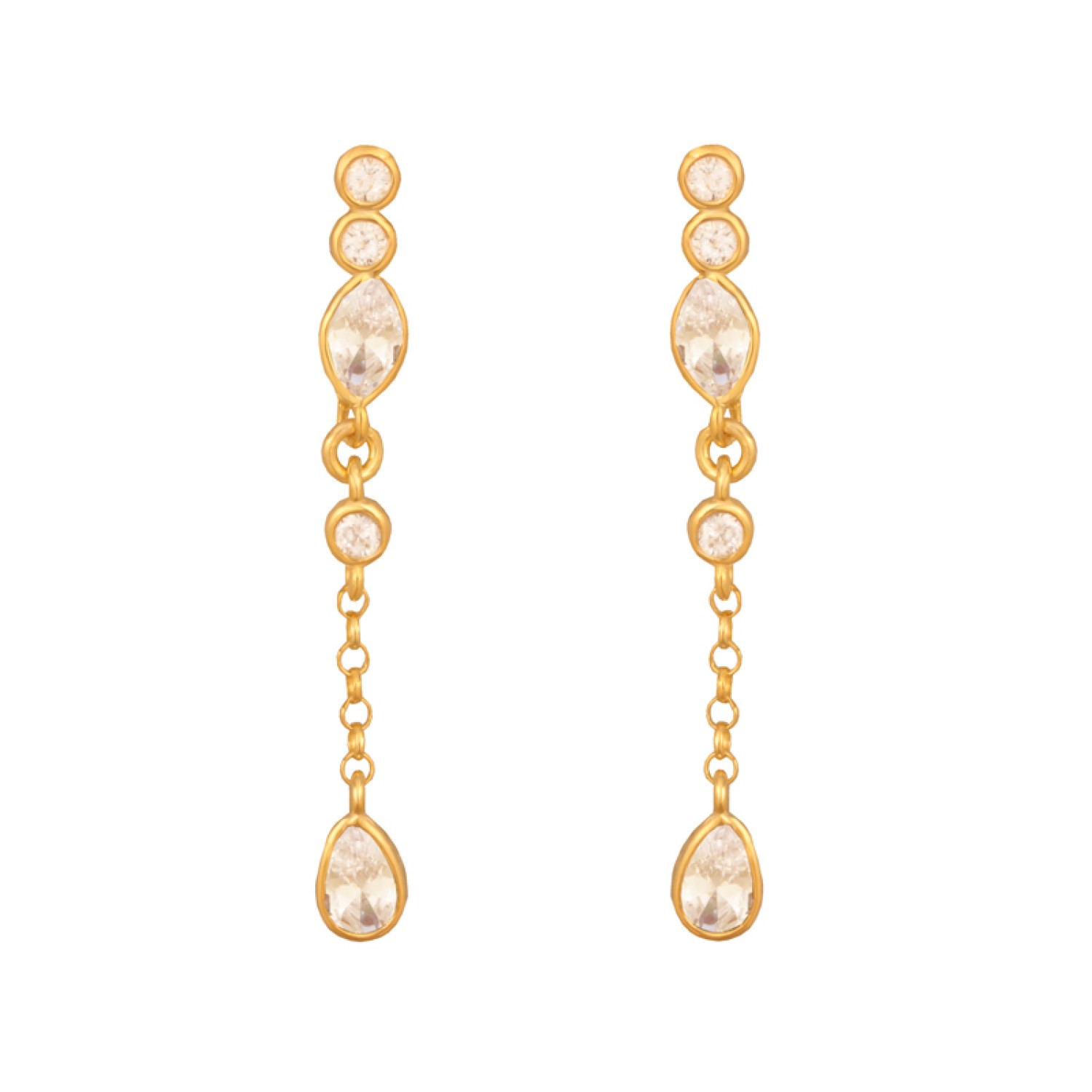 Ασημένια επίχρυσα σκουλαρίκια Αλυσίδες Μονόπετρα