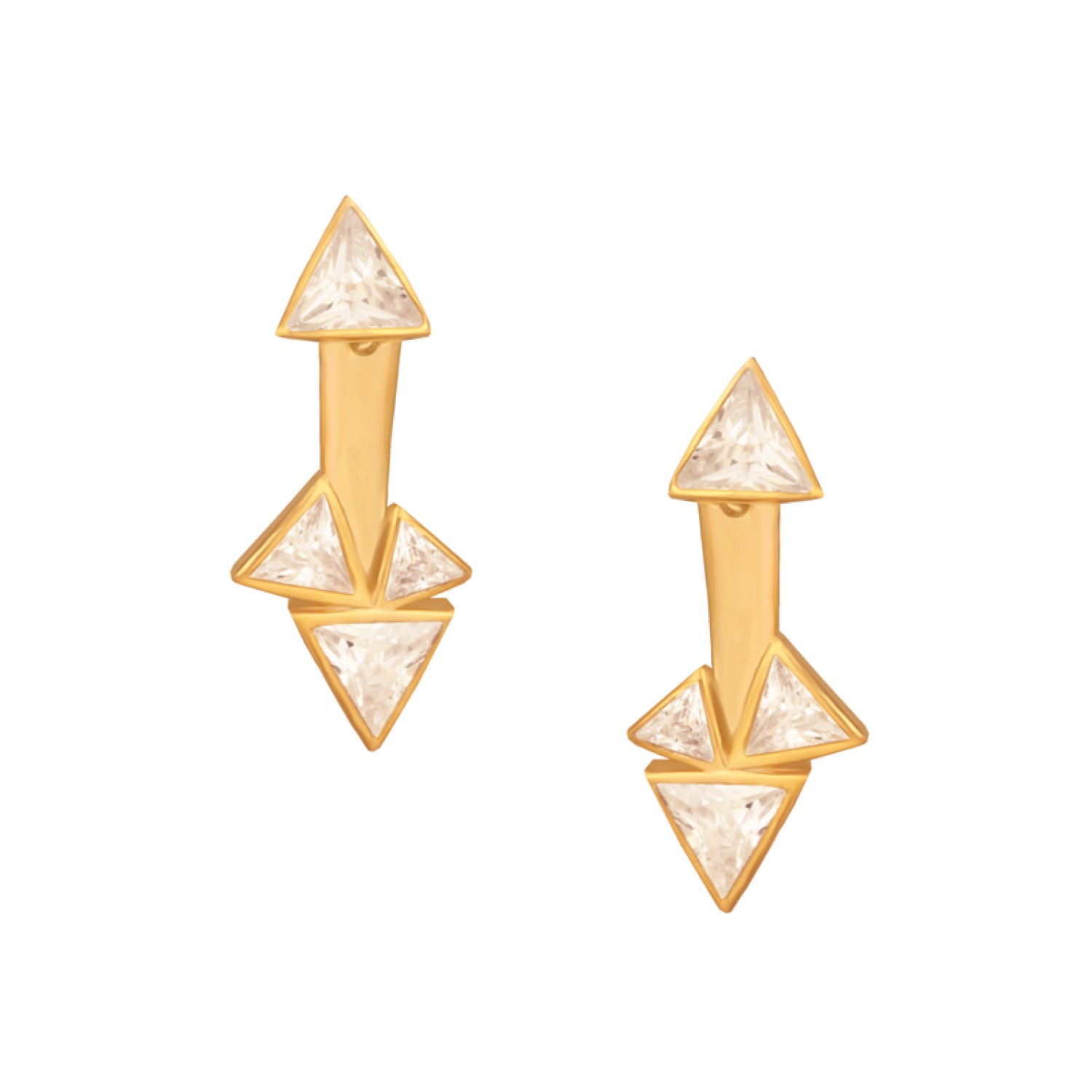 Ασημένια επίχρυσα σκουλαρίκια ear jacket Τρίγωνα
