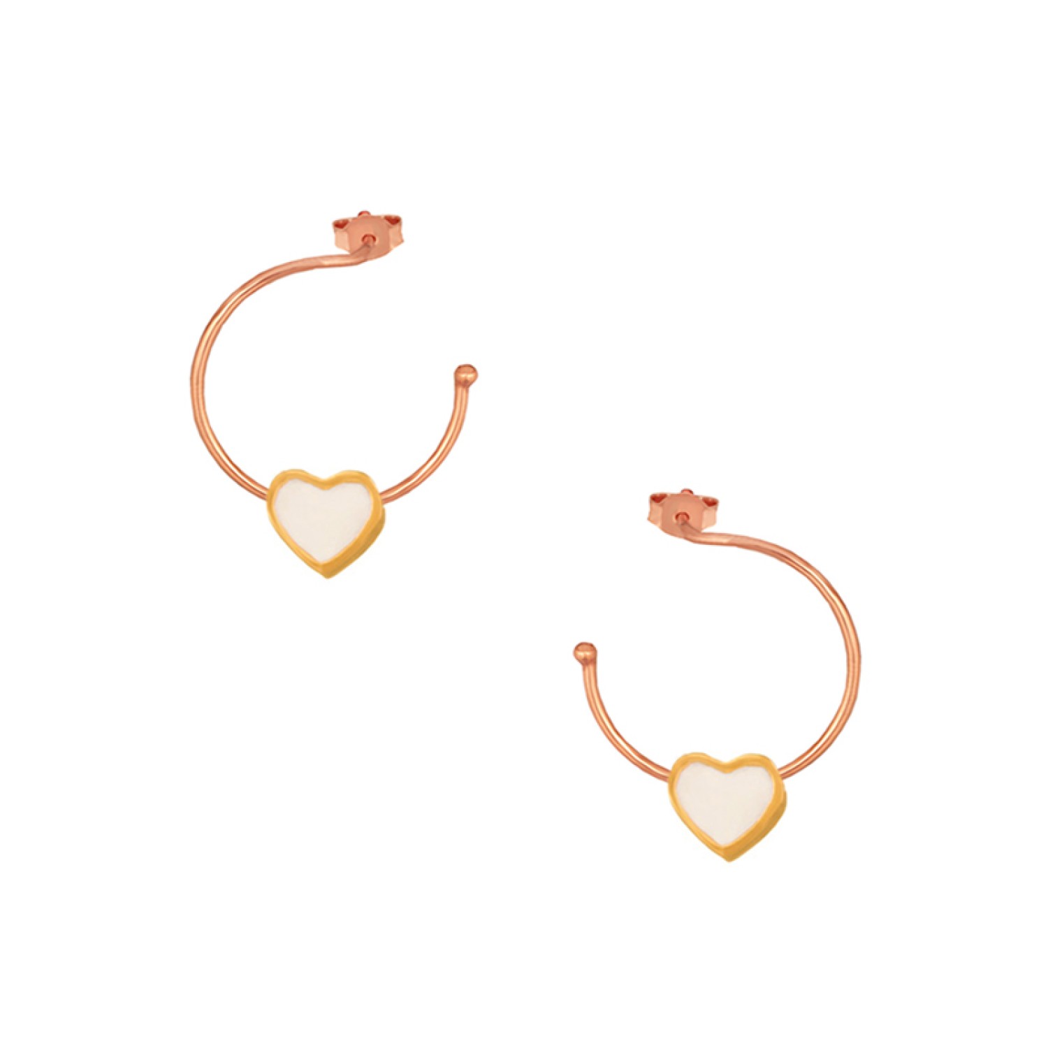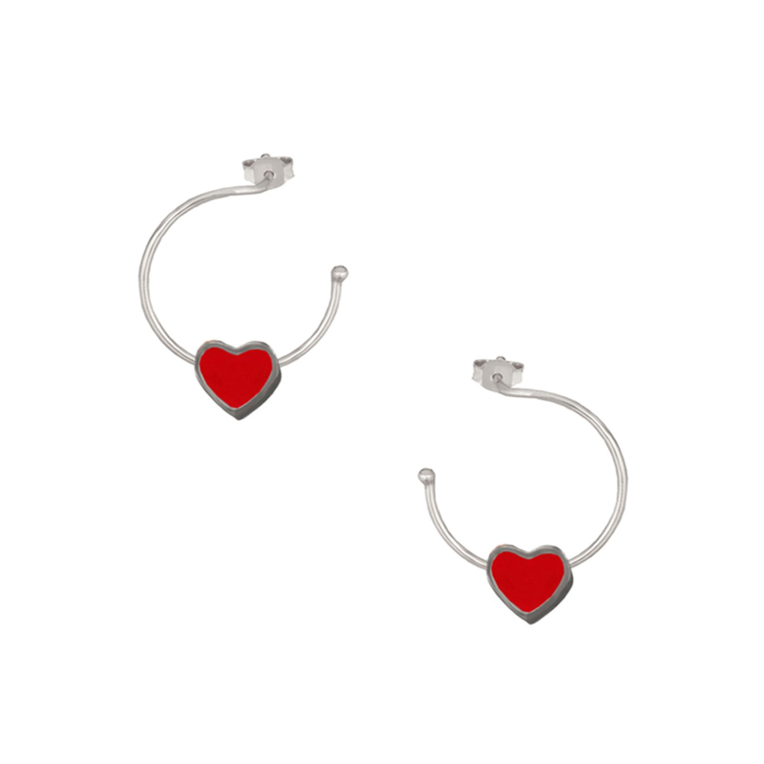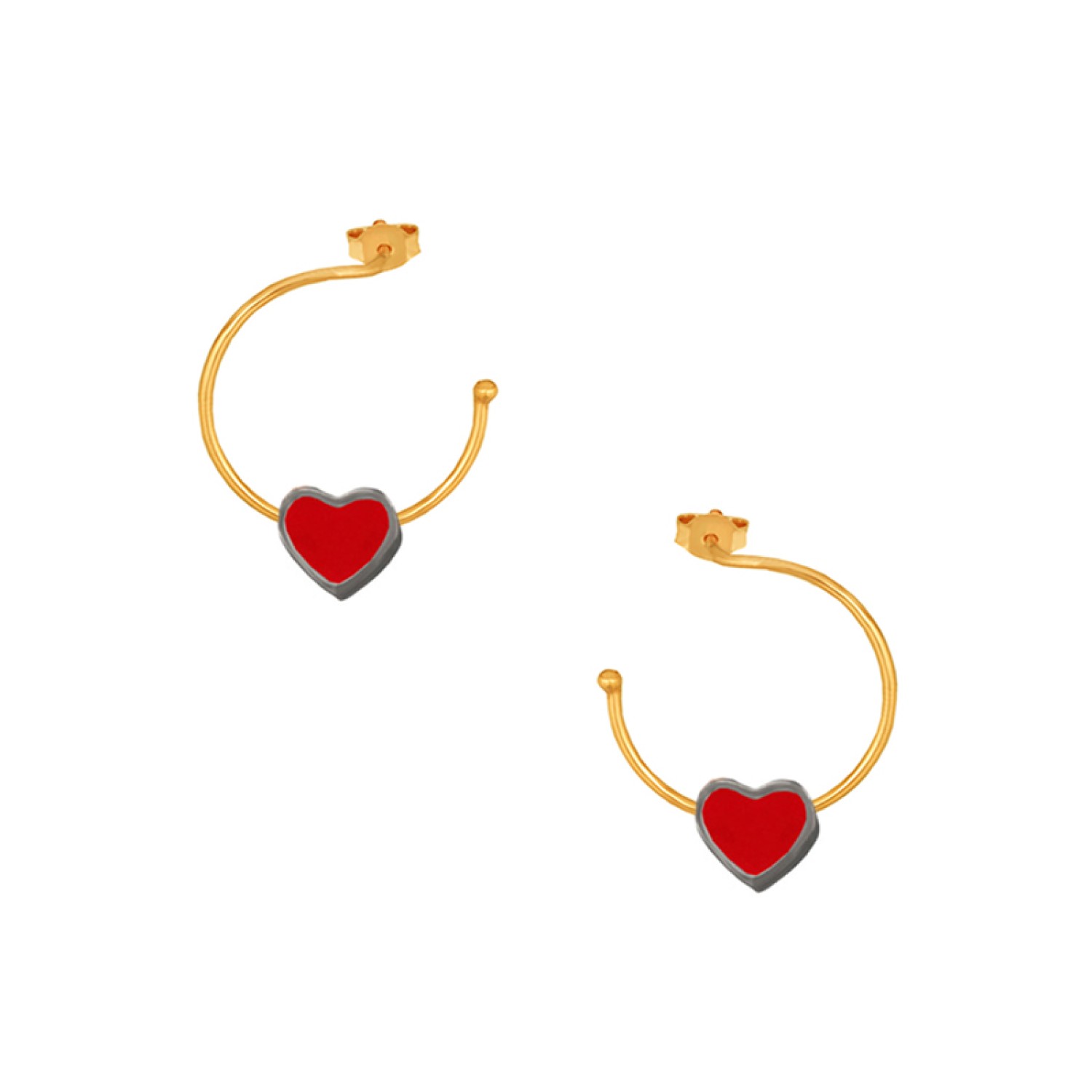 Ασημένια επίχρυσα σκουλαρίκια Κρίκοι Καρδιά Σμάλτο 16.00mm