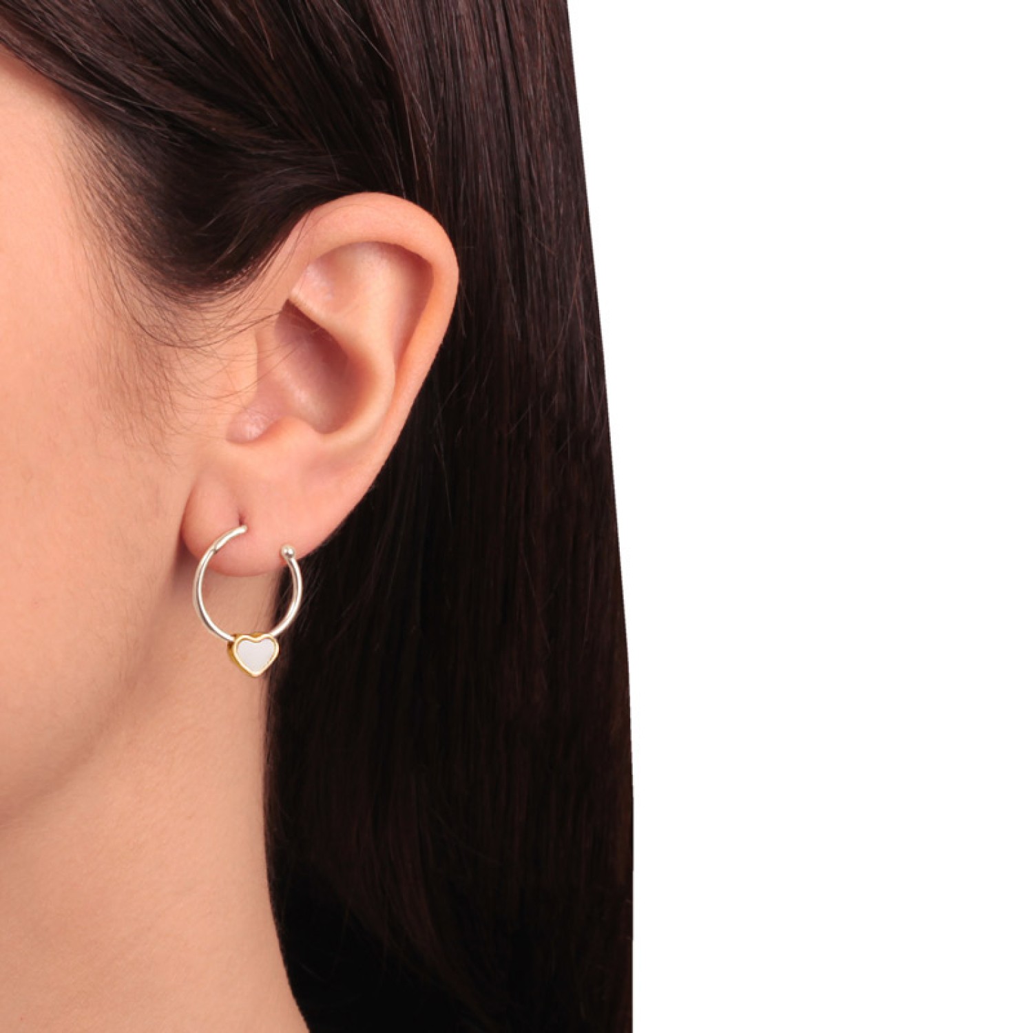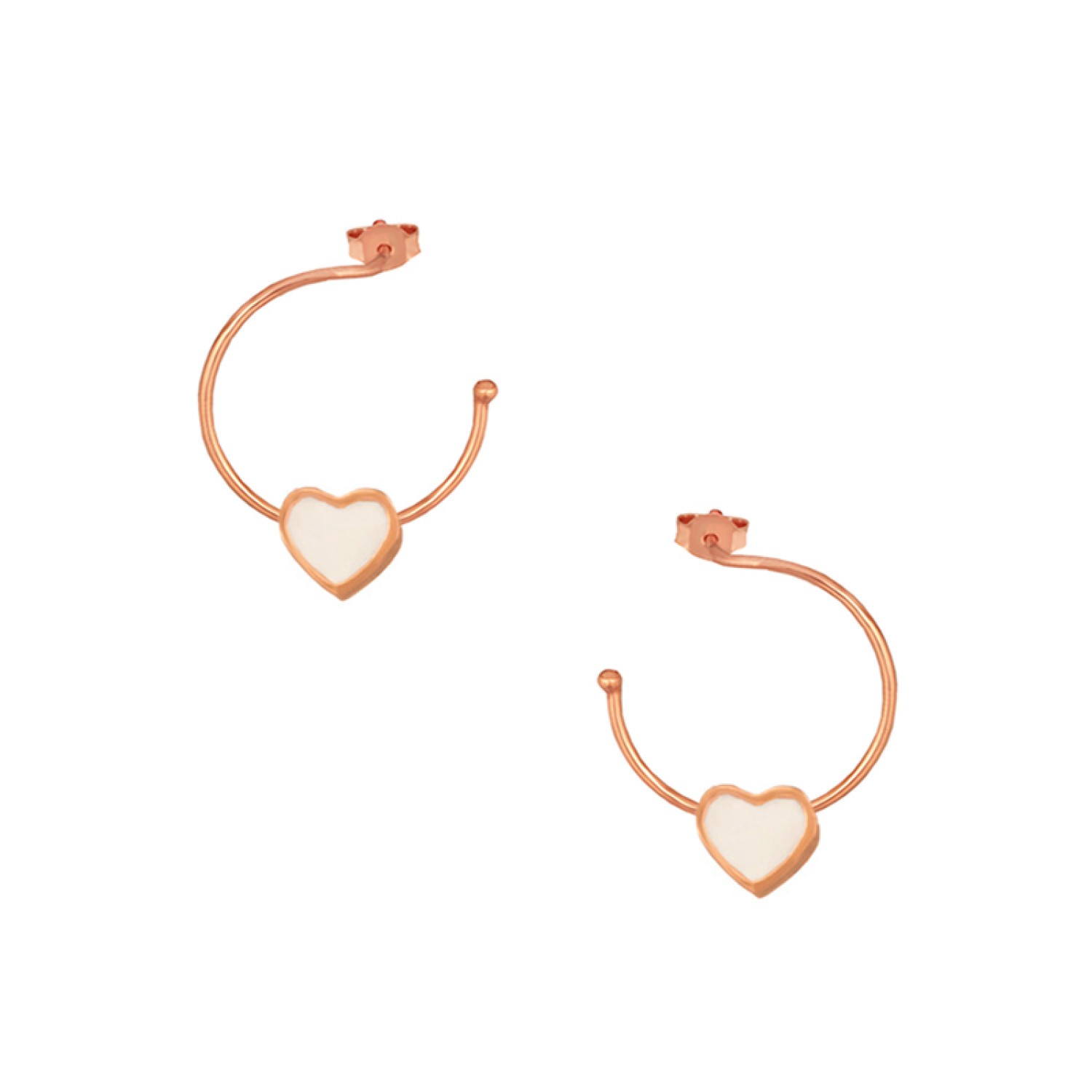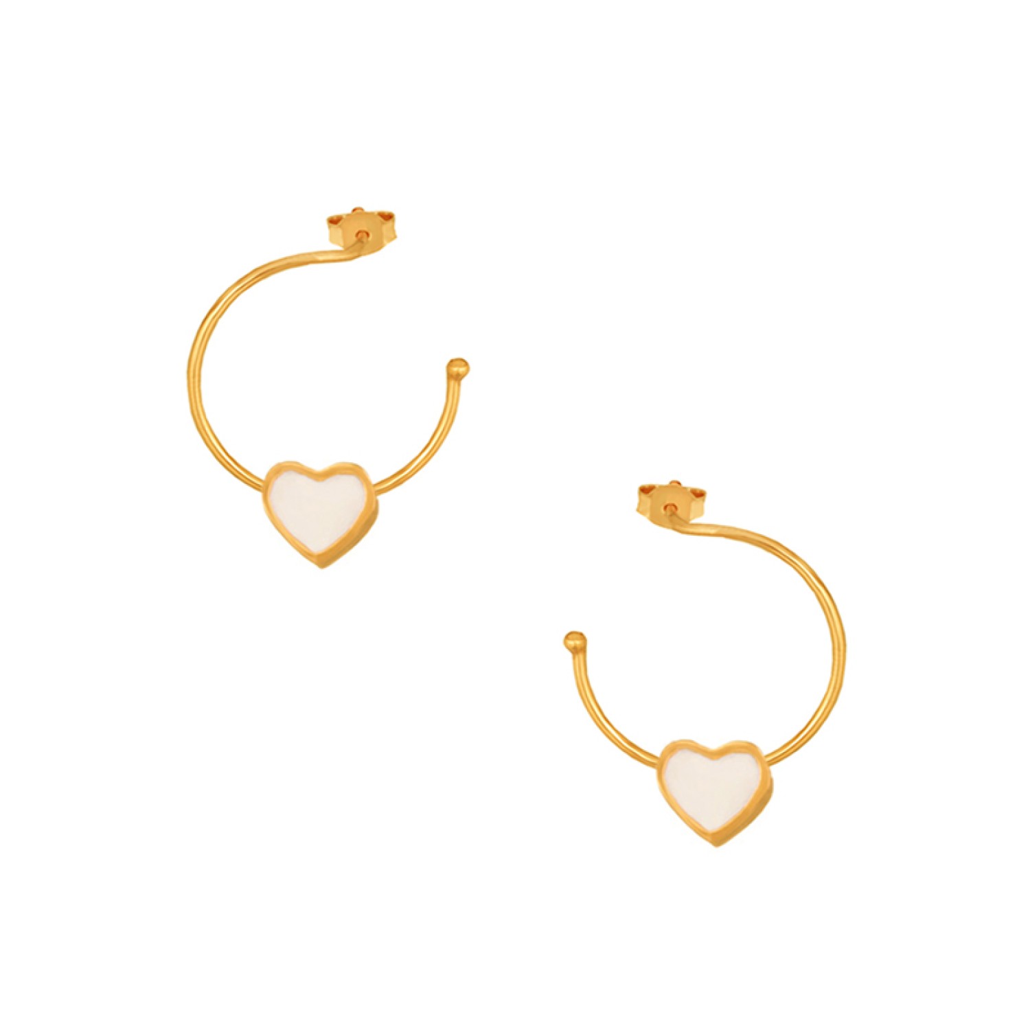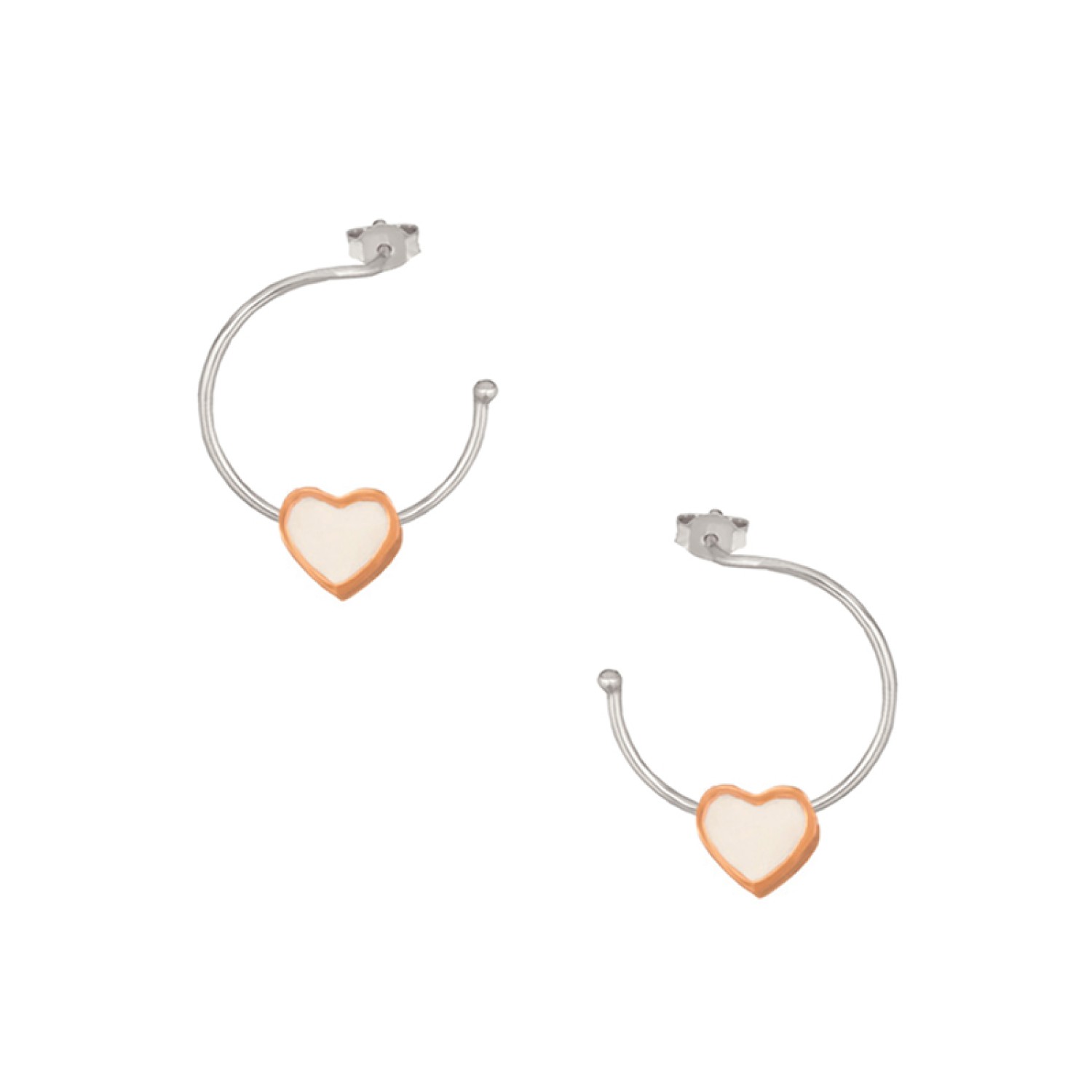 Ασημένια επίχρυσα σκουλαρίκια Κρίκοι Καρδιά Σμάλτο 16.00mm