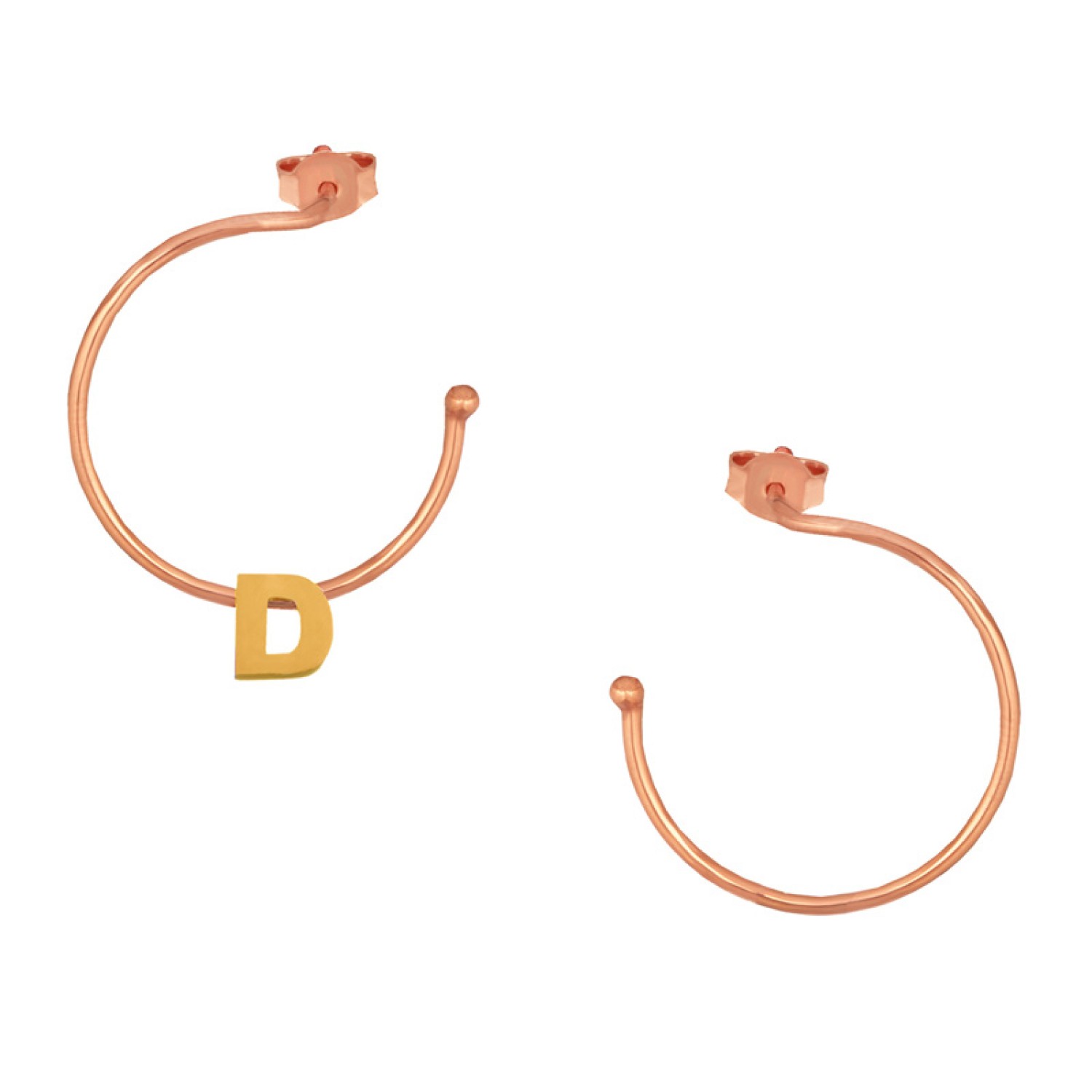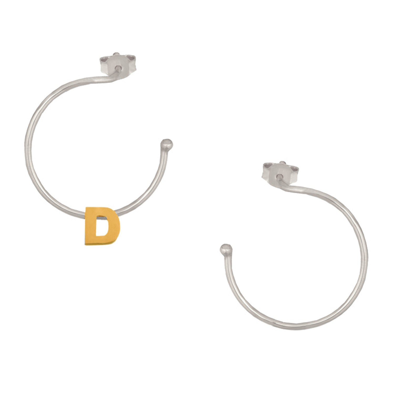Ασημένια επίχρυσα σκουλαρίκια Κρίκοι Μονόγραμμα D 25.00mm
