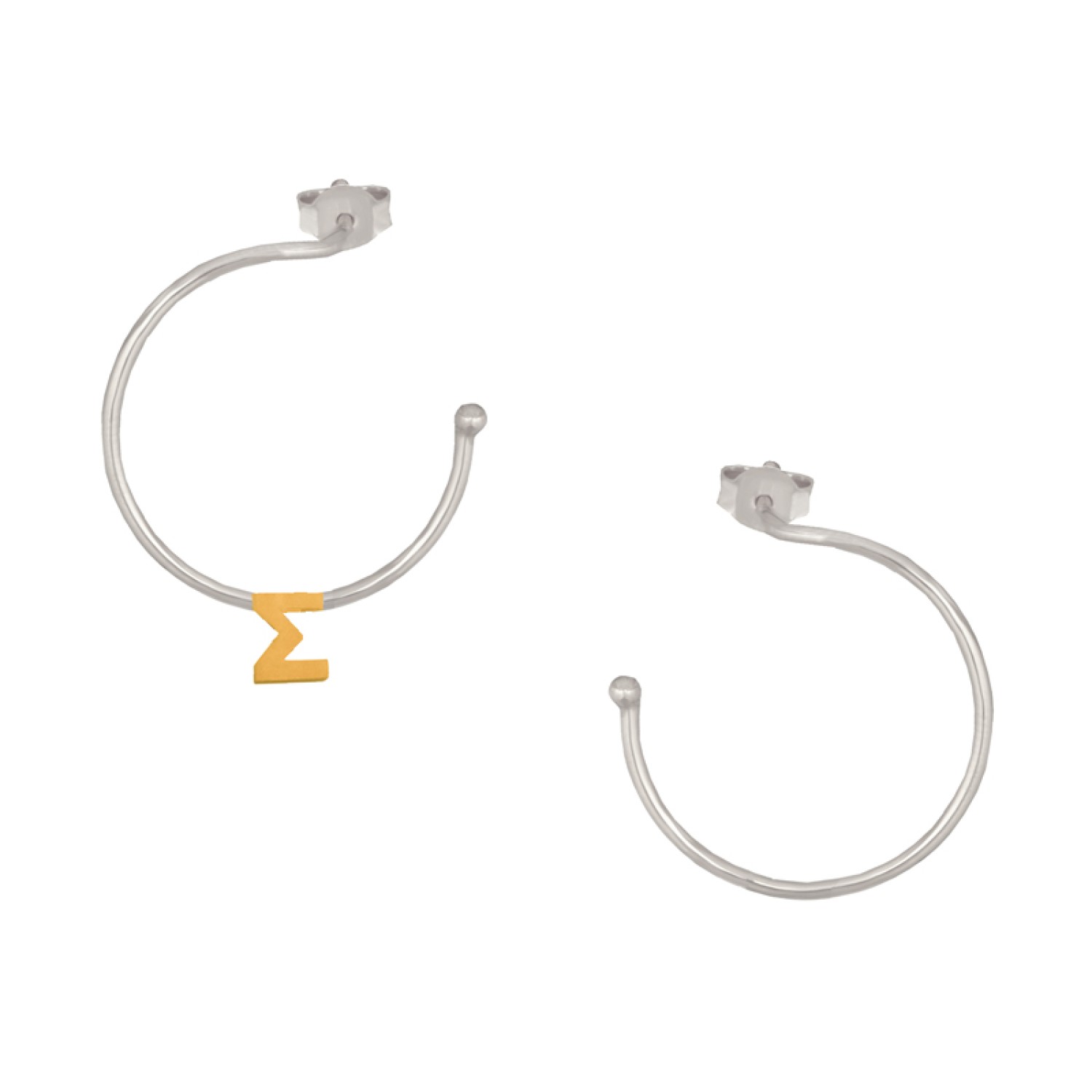 Ασημένια επίχρυσα σκουλαρίκια Κρίκοι Μονόγραμμα Σ 25.00mm