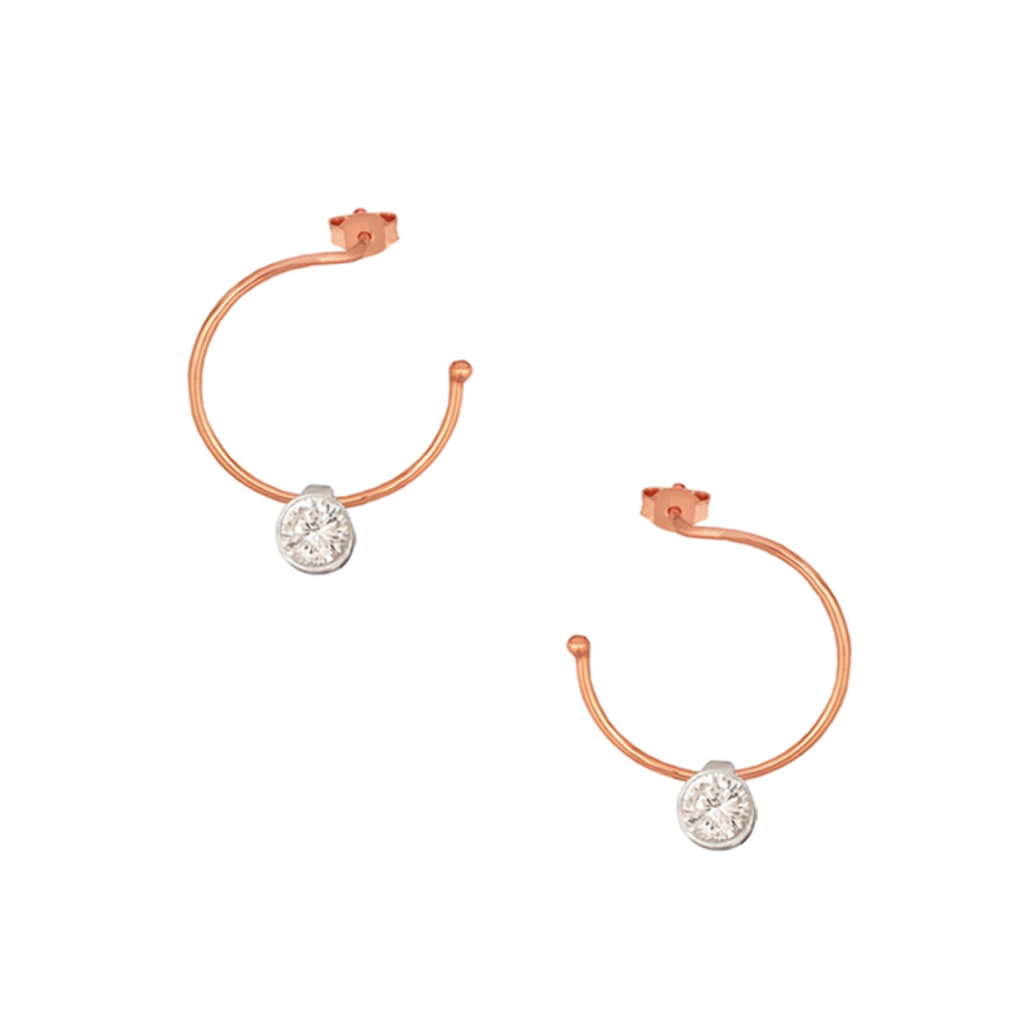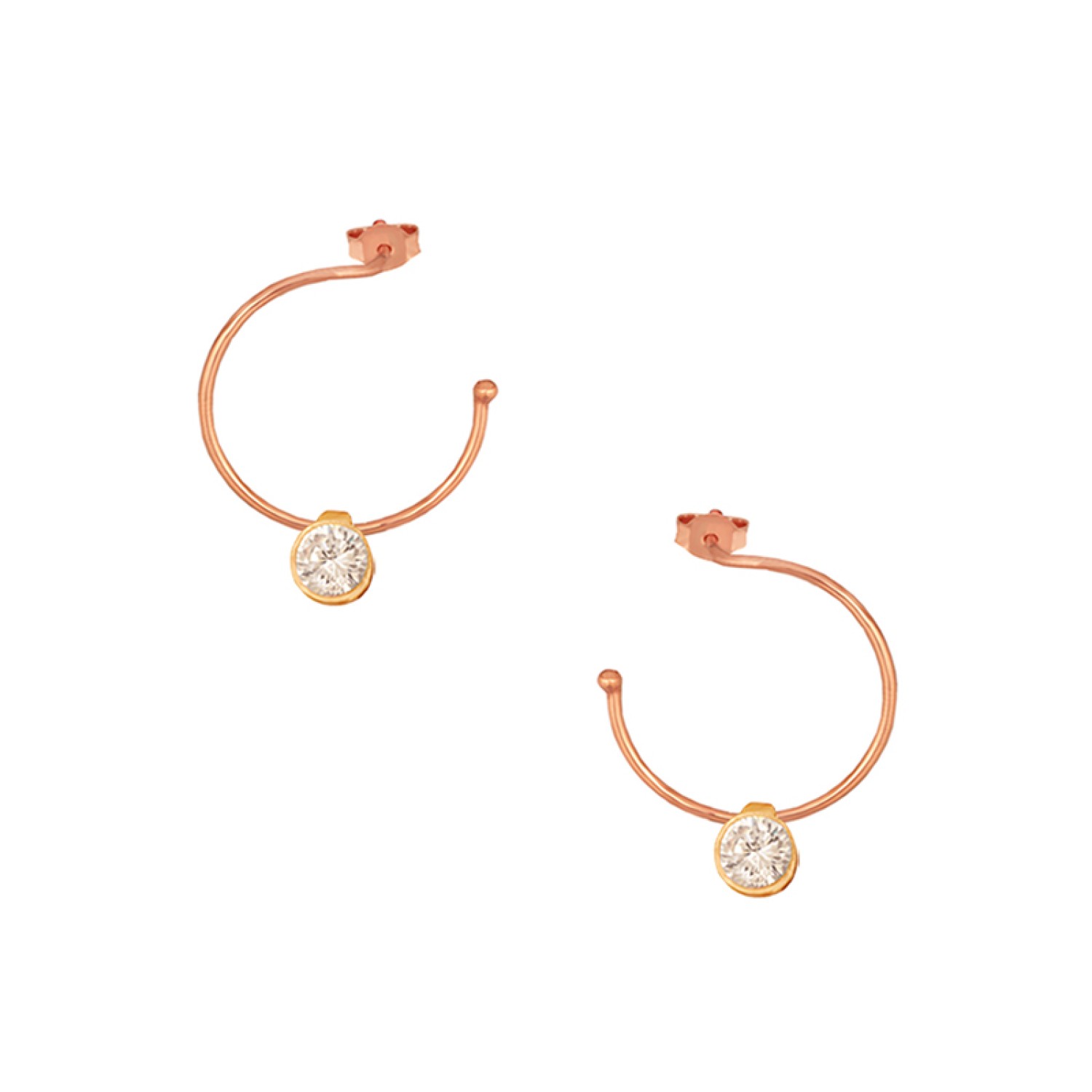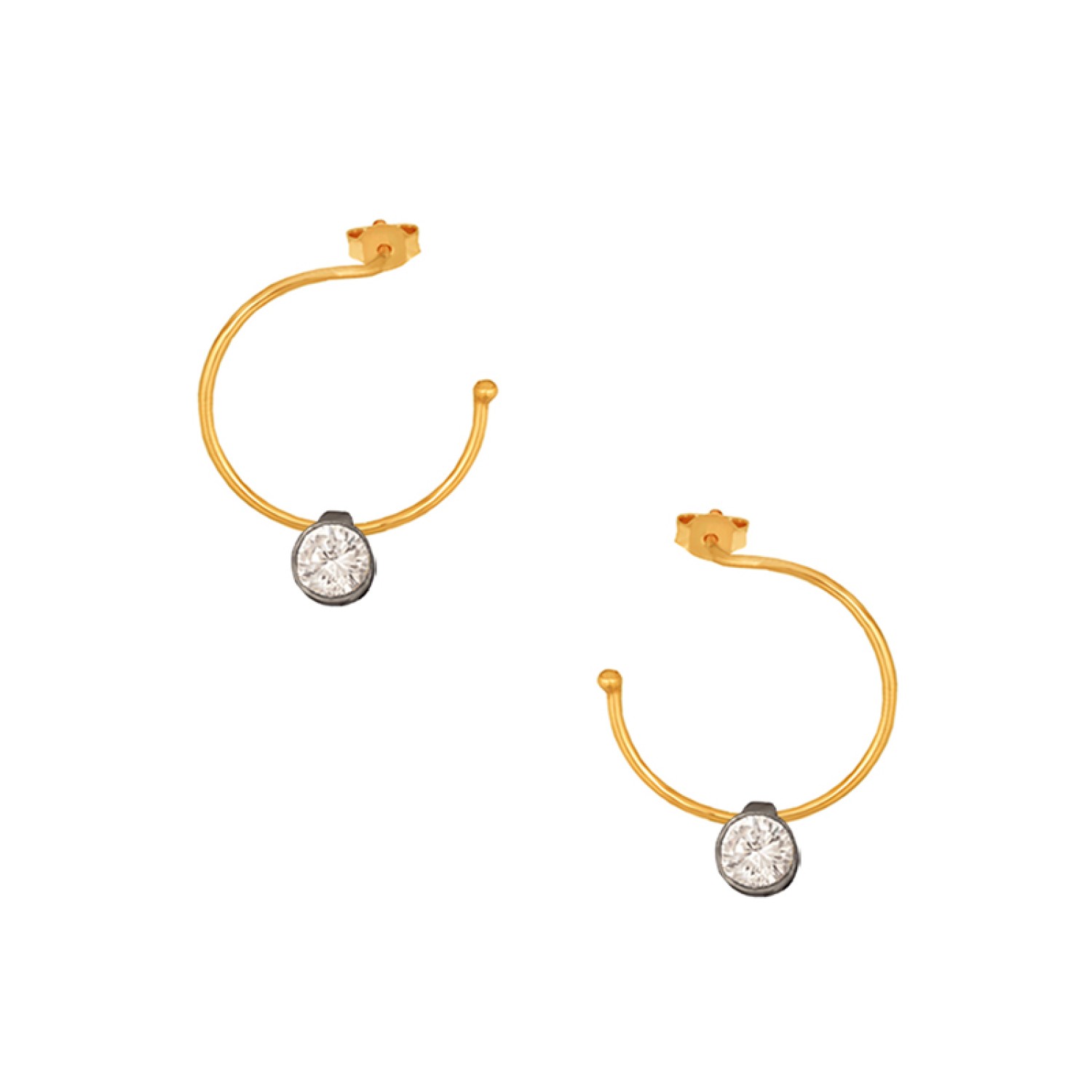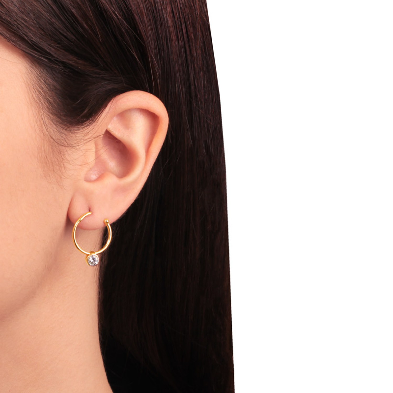 Ασημένια επίχρυσα σκουλαρίκια Κρίκοι Μονόπετρα 16.00mm